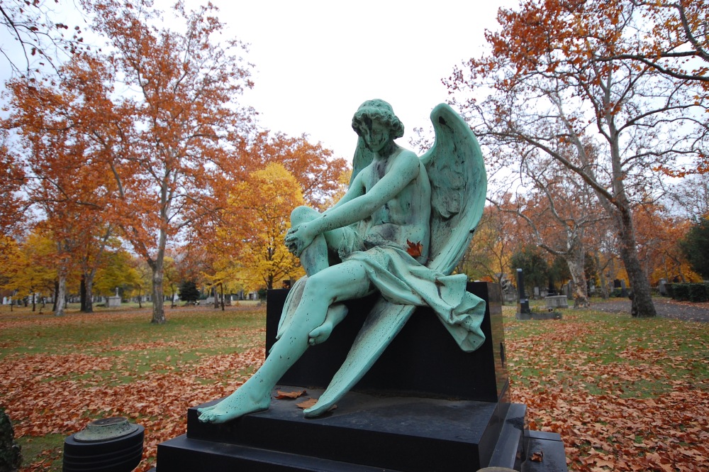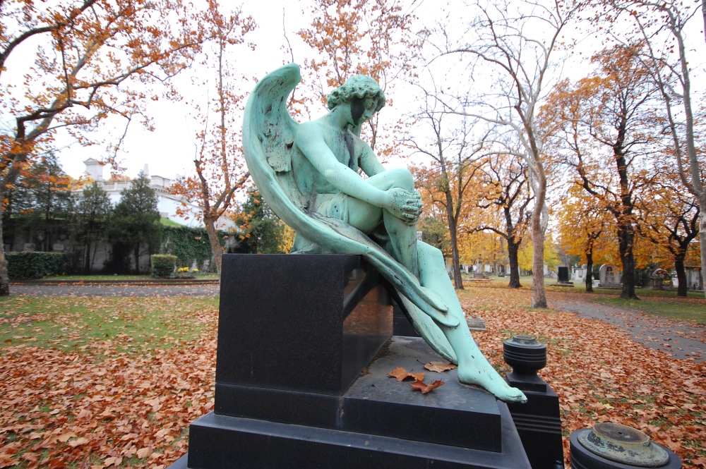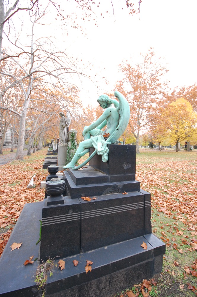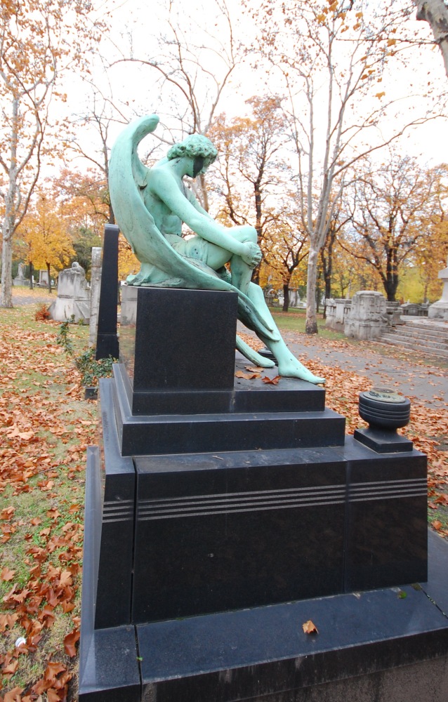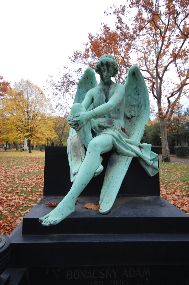 Bonácsny Ádám és felesége síremléke a Kerepesi temetőben. Schmidt Gyula szobra.