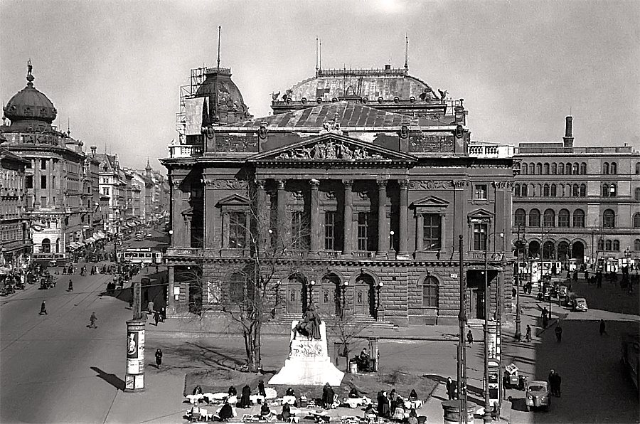 de mégis nagy a régi és a mostani közt a különbség. A szobor egyébként egyike volt annak a tíz darabnak, melynek anyagi fedezetéről, amolyan királyi adományként, Ferenc József gondoskodott. A kezdődő metróépítkezés lett a végzete (Tinódinál plebejusabb és hozzáillőbb íróembert az akkori korszak nehezen találhatott volna az irodalomtörténetben), talán egy mára kiveszett városrendezési látomás is ott állt az akció mögött, mely szobrokkal szerette volna benépesíteni a Népligetet — az épület, az egykori Népszínház, az akkori Nemzeti Színház ezután még majdnem tíz évig kihúzta.