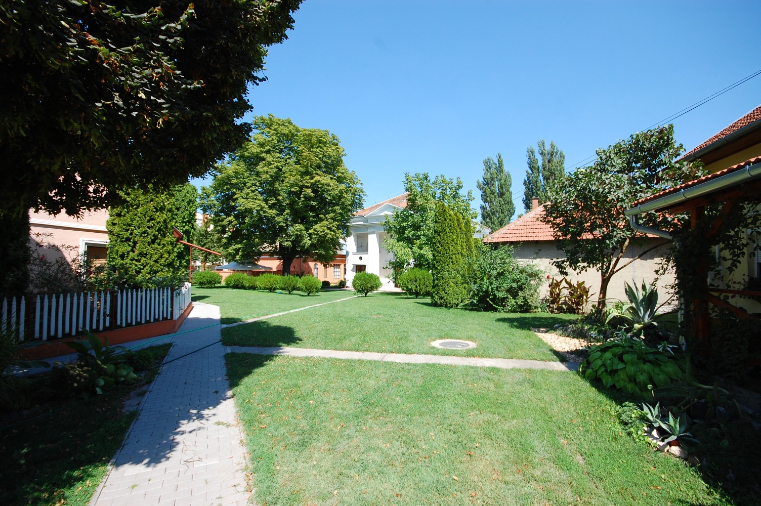 A zsinagóga és a kiszolgáló épületek a kert nyugati feléből nézve.