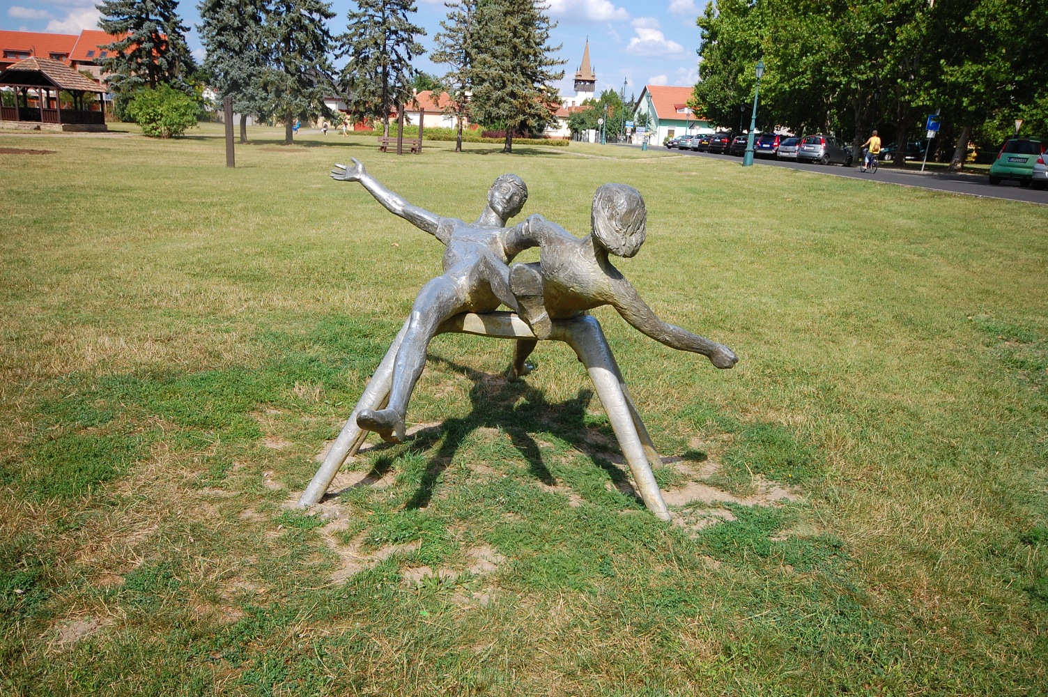 Bencsik István Libikóka című alumíniumszobrát figurális pályaszakasza legelején, 1958-ban állították fel Gyulán, a Vár és a fürdők közötti parkocskában. A szobrász, utóbb generációk mestere, a céhhez mérve igen fiatal, 27 éves volt ekkor. A különös architektúrájú szobor friss volt születése idején, és friss maradt mind a mai napig, talán azért, mert közelebbi témáját, a hintázást, valójában két fiatal teremtés önfeledt-szerelmes egymásba kapaszkodását és egyensúlyozását olyan magátólértetődőséggel, mégsem közhelyesen fogalmazta meg. A városnak ezt a részét isten is arra teremtette, hogy szobrokkal tömjék tele — hála a diadalmaskodó jóízlésnek, mégsem ez történt az elmúlt több mint ötven évben. Bencsik nagyjából életnagyságú szobra egyedül áll a zöldterület közepén, szinte kiköveteli a körüljárást, megszemlélését minden oldalról, aprólékosan, és nincs is mit tenni, körbe-körbe kell menni körülötte.