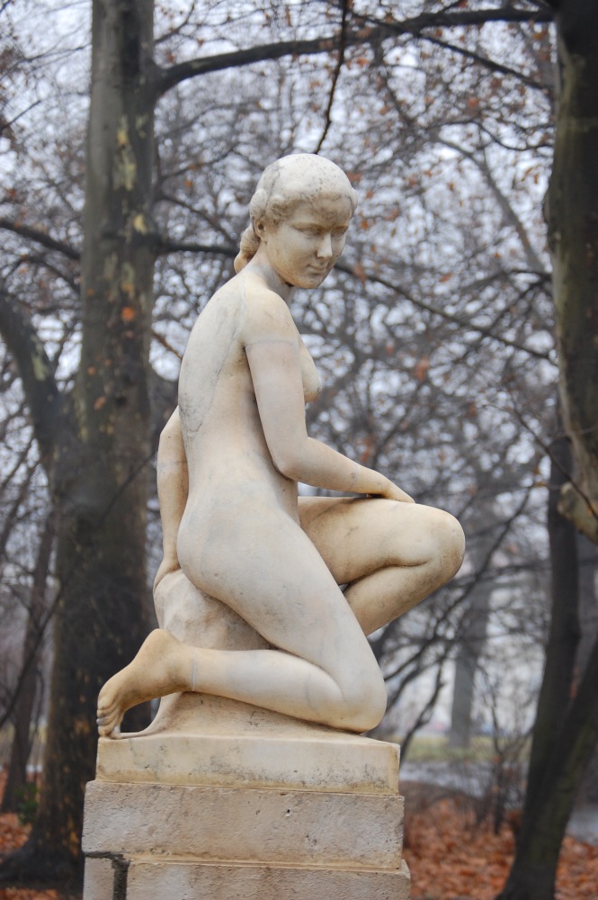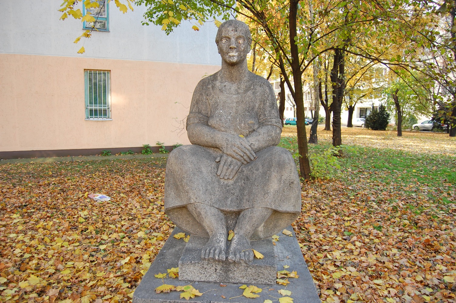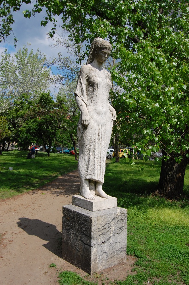 23. Péter Zsuzsa: Kendős lány. (1970) A szobor még a parkrendezés előtti években. Ez volt különben az első szobor, amit tudatosan fényképeztem körbe, évekkel a köztérképes időszakom előtt. A szobor a Köztérképen.