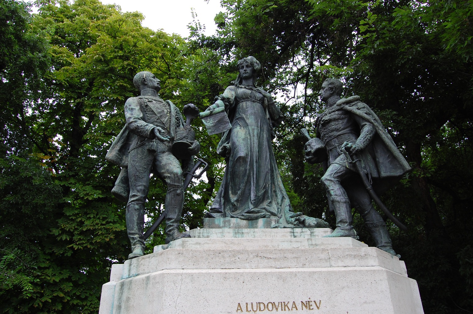 34. Bassler Adolf: Mária Ludovika József nádorral és gróf Buttler Jánossal. (1992/1901) A szobor a Köztérképen.