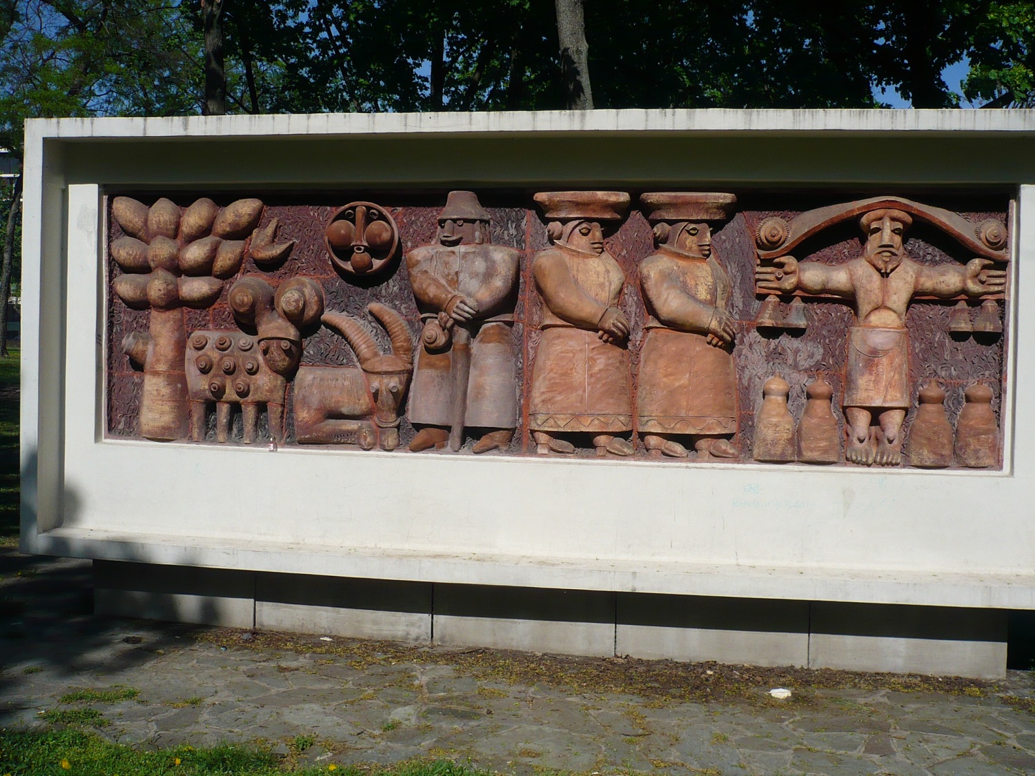 Két nappal ezelőtt, 2013. november 17-én volt 140. évfordulója annak, hogy Pest, Buda és Óbuda Budapest néven, a jelenlegi I-XIV. kerület területén egyesült (a mai közigazgatási kerületek csak később, a harmincas években jöttek létre, a mostani Nagy-Budapest pedig 1950-ben). Későn kaptam azonban észbe, hogy feltöltsem az itt látható sorozatot, 140 képet 140 budapesti szoborról, és két nappal már túlszaladtam az alkalmon. Ezt a késést úgy igyekszem behozni, hogy a sorozatban valójában 141 kép látható — a népligeti Centenáriumi Parkban, ahol negyven évvel ezelőtt 19 megye ünnepelte ugyanennek az eseménynek a százéves fordulóját, jóformán egyedüli hírmondóként ott áll Zala megye ajándéka, Németh János kétoldalas kerámiadomborműves sztéléje, és ennek mindkét oldalát bemutatom itt.