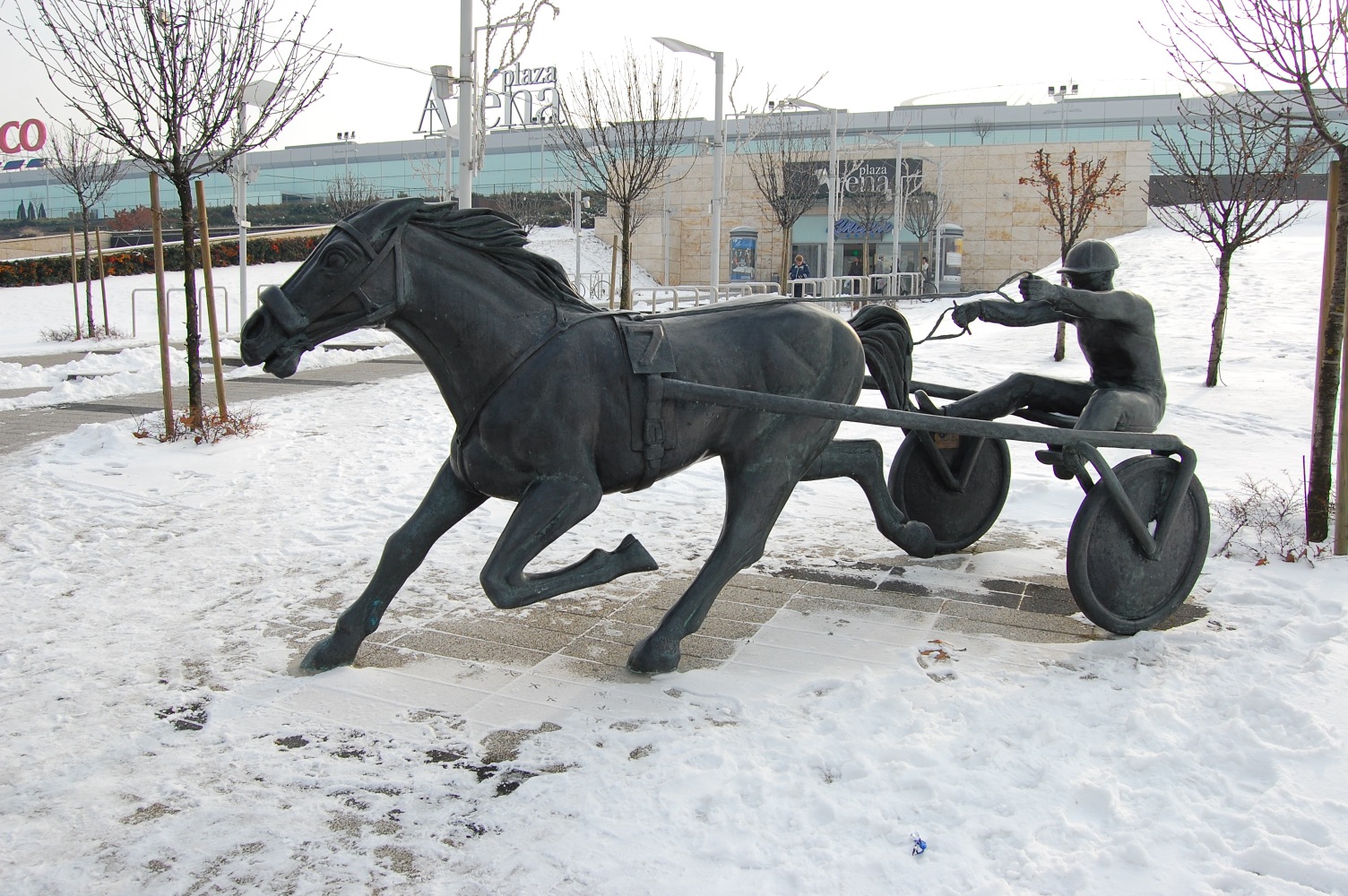 93. Szorcsik Lajos: Az ügető hajtó. (2010) A szobor a Köztérképen.