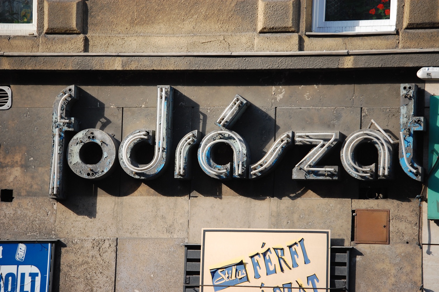 A Városház utcai üzlet neon-cégére. [2013. június 9.]