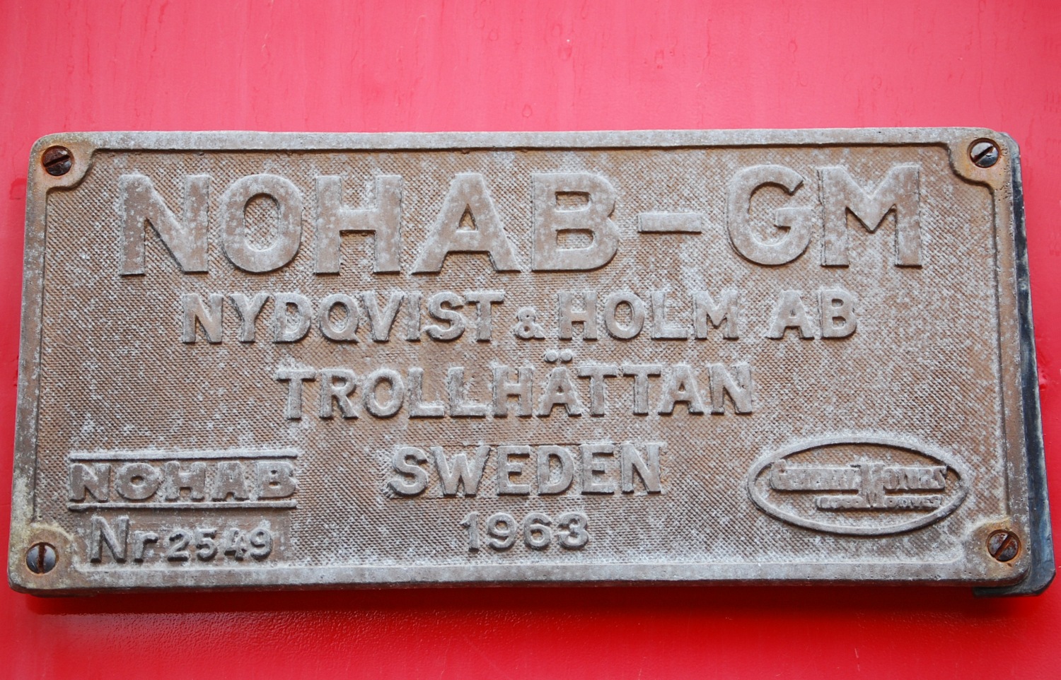 És az egykor balesetet szenvedett, múzeumi tárggyá váló mozdony márkatáblája. Volvo a mozdonyok közt. [2009. május 16.]