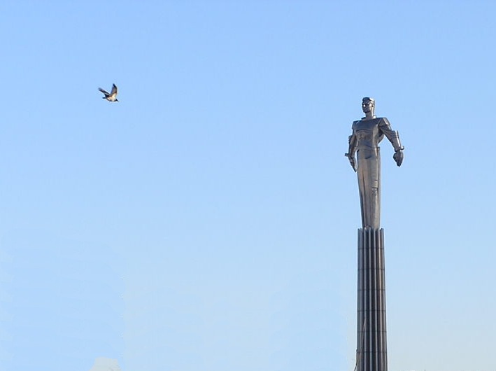 A legvérmesebbek aztán saját utánzójukkal is szembefordulnak. (1980, Moszkva, Gagarin-emlékmű — a kép forrása)