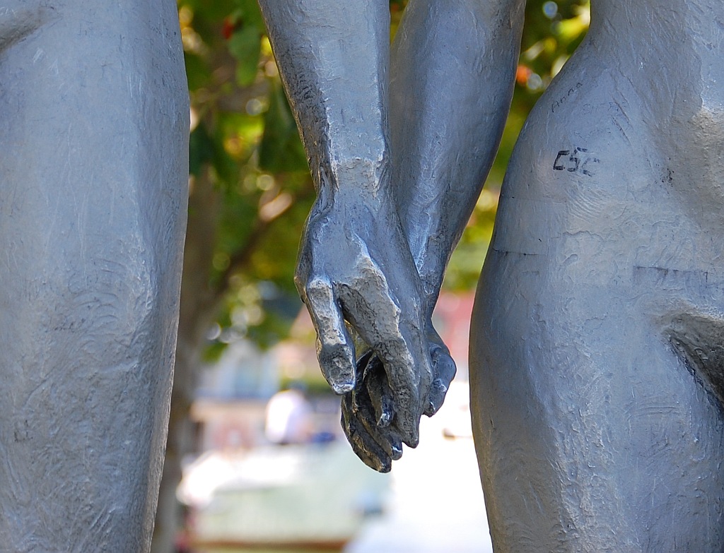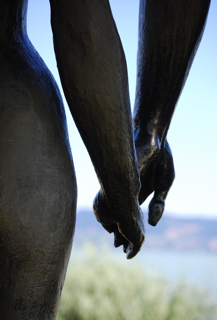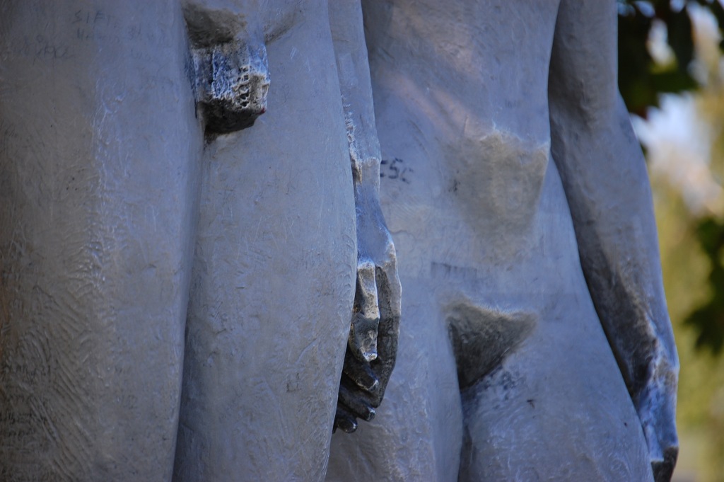 Egyetlen kérdés marad hátra, e bejegyzés címe. Lerövidítettem a József Attila-versből kinyert sort, hiszen “alázatról” e szobrot elnézve talán mégsincs szó. És nem is akarom olcsón a teletetovált testfelületekre, a dátumok szerint jól láthatóan sokszor az 1960-as évekből származó firkákra redukálni a “kínt”, még akkor sem, ha ez tényleg “páros kín”. Mégis benne van ebben a mezítelen, nyúlánk, fiatal párban a szerelem gyönyörű várakozása és az élet reménytelen beteljesületlensége, a megformálásban és ábrázolásban a kiszolgáltatottság, ami a kínnak közelebbi, az alázatnak végeredményben valami nagyon távoli rokona. Minderről kézzelfoghatóbban talán nem is lehet szólni, mint ahogy az idézett verssor teszi. És József Attila ellen Kiss István se tiltakozna. Sőt.