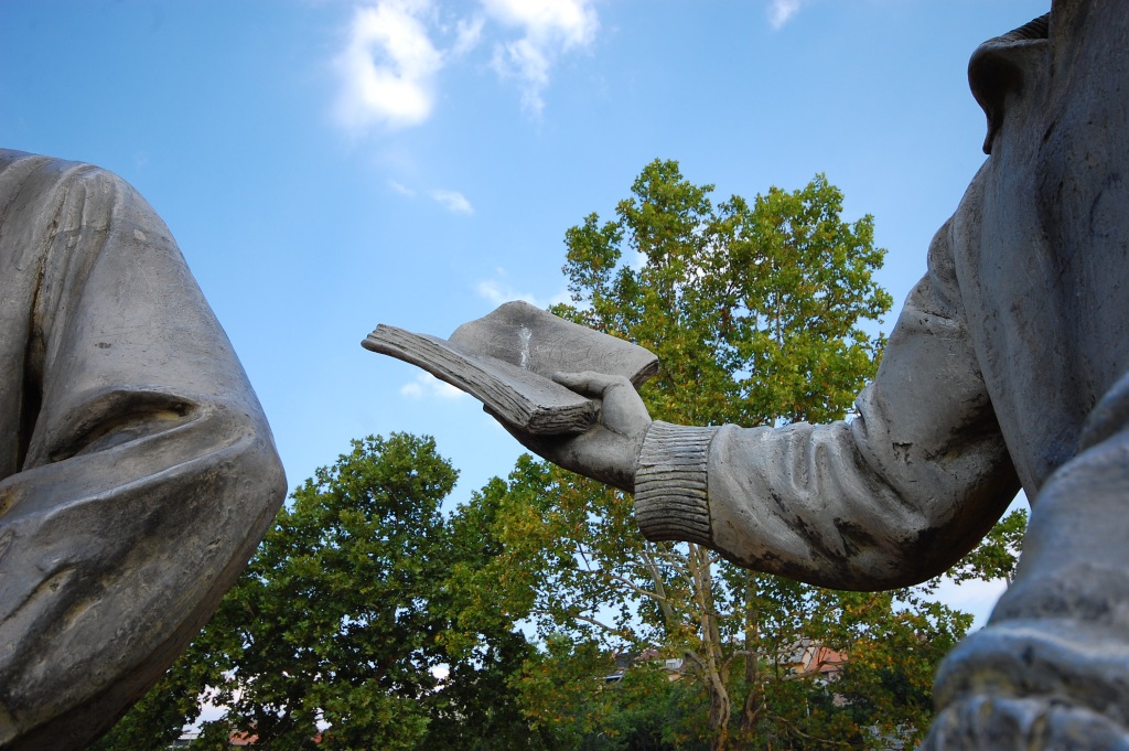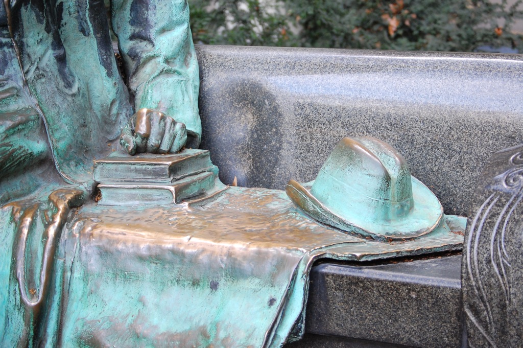 Ez a poszt egyébként ún. mozgó poszt lesz, amilyen A kalap című is volt, érdemes lesz rá vissza-visszanézni, mert állandóan bővülni fog, ahogy újabb és újabb szobrokat találok a témához, márpedig ilyen jócskán akad. Könyv és kalap jegyben járnak,