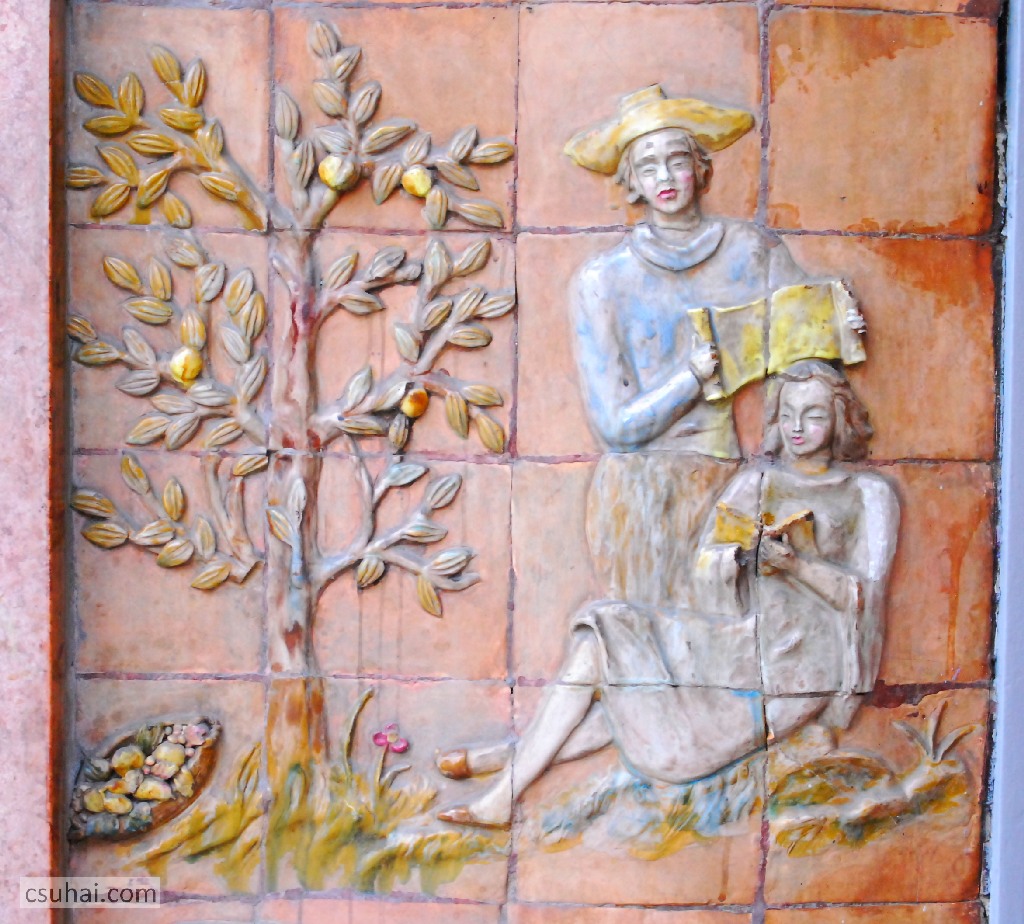 Kovács Margit: A Szent István körúti egykori Népművészeti Bolt bejáratának díszítései, részlet (1941)