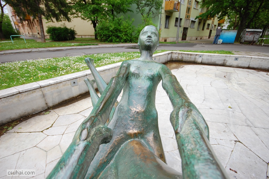 Azt látja, aki őt látja, hangzana a hegeli válasz. Mégsem egészen így van. Ez a poszt voltaképpen emlékeztető — tavaly májusban, mikor elindult a blog, még úgy gondoltam, elegendőek lesznek a képek, de ahogy az ember öregszik, úgy látszik, egyre többet dumál. Idén újra eljutottam Pécsre, az Uránvárosba, Laborcz Ferenc Játszó gyermekek című, 1962-ben készült, 1964-ben felállított kútszobrához.