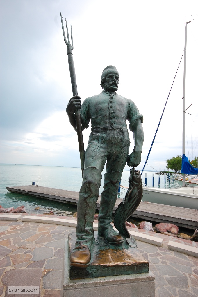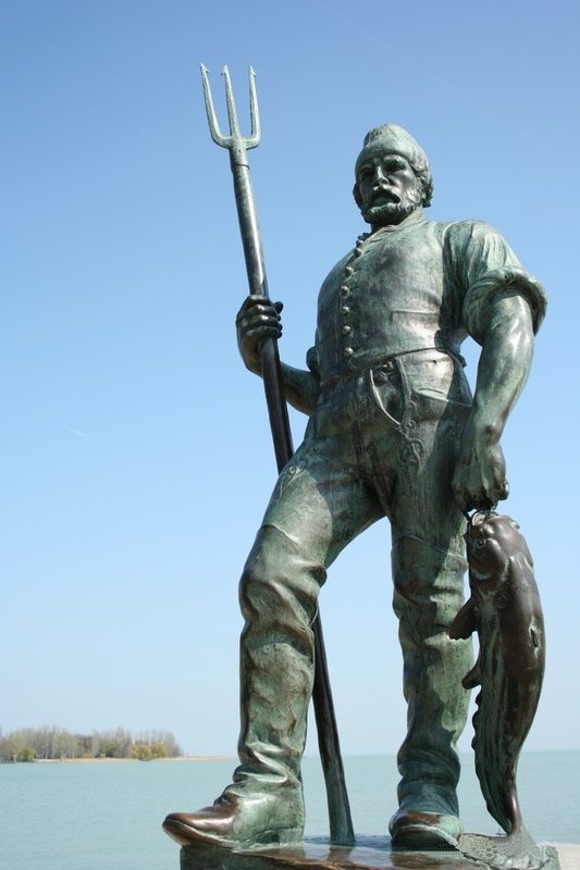 Minden szobornak van egy titka. Ennek is, ami most következik, pedig ez nem is egyetlen szobor. Úgy lenne illendő, hogy két titkuk legyen, de egyelőre csak egyről tudok, azon osztoznak. Pásztor János két balatoni alakját 1941-ben, a balatonfüredi kikötő megépítésekor állították fel a helyén, bal oldalt a kalapos, bajszos, evezőlapátos Révészt, jobb oldalt az egyik kezében szigonyt, a másikban harcsát tartó Halászt.