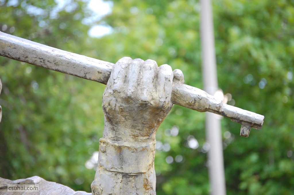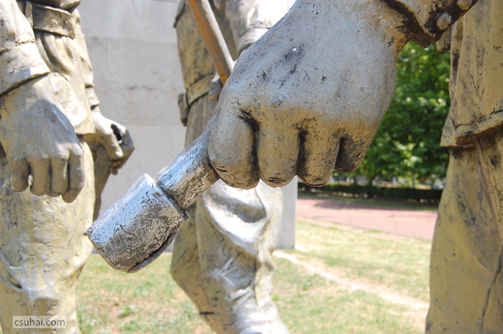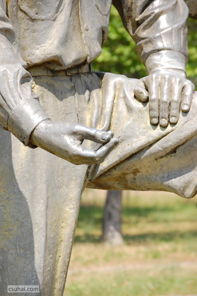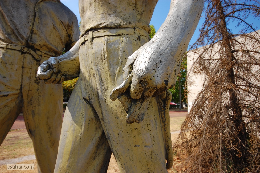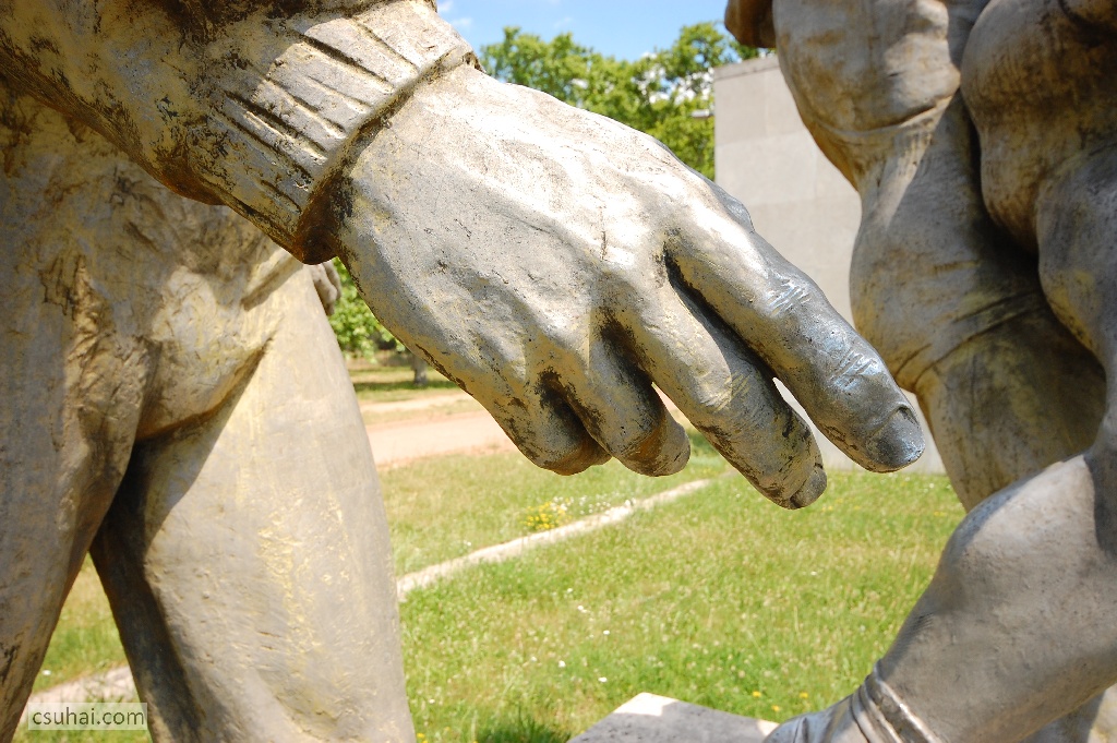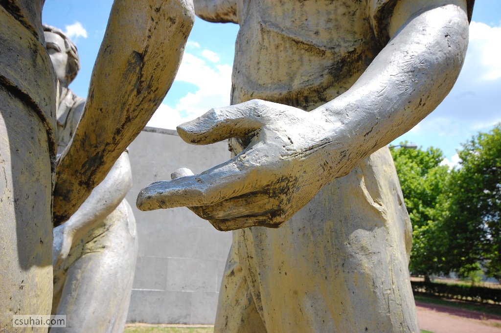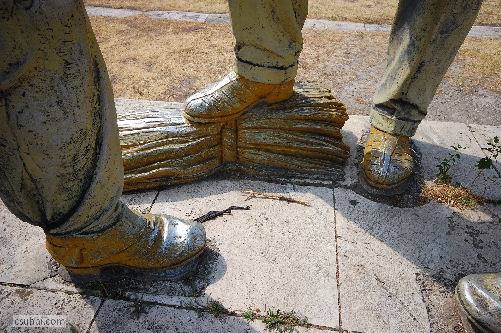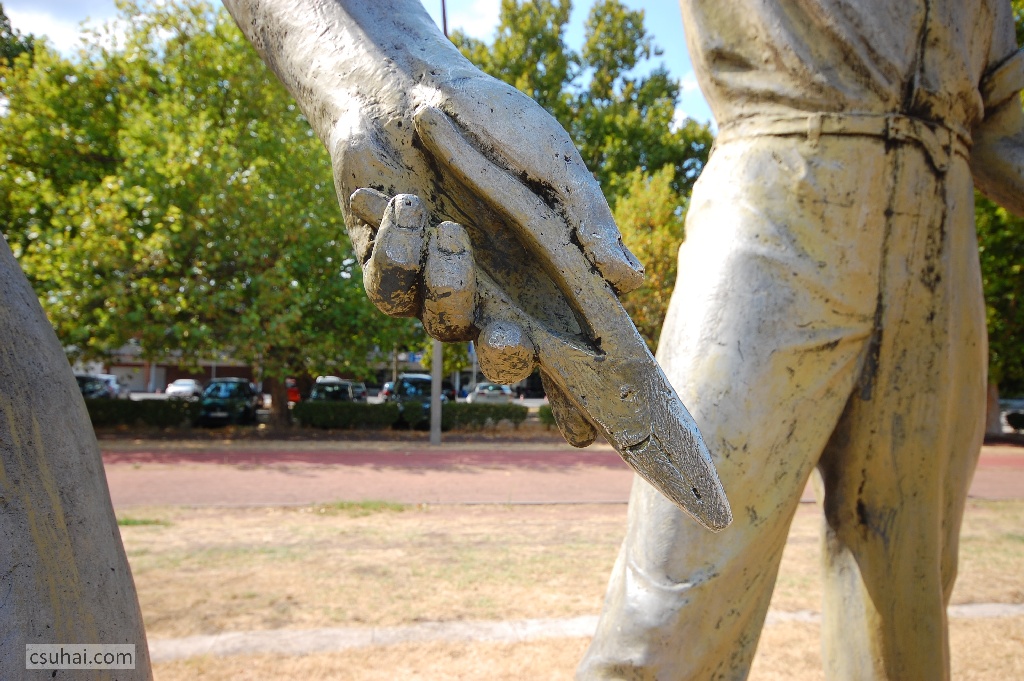 Még a régi hajógyár egykori épülete előtt álló hajómunkás-szobrokat fényképezve vetődött fel bennem, hogy a kézfej aprólékos kidolgozása ha nem is kizárólagosan jellemző jegye, de legalábbis szükséges követelménye a szocreál ábrázolásnak.