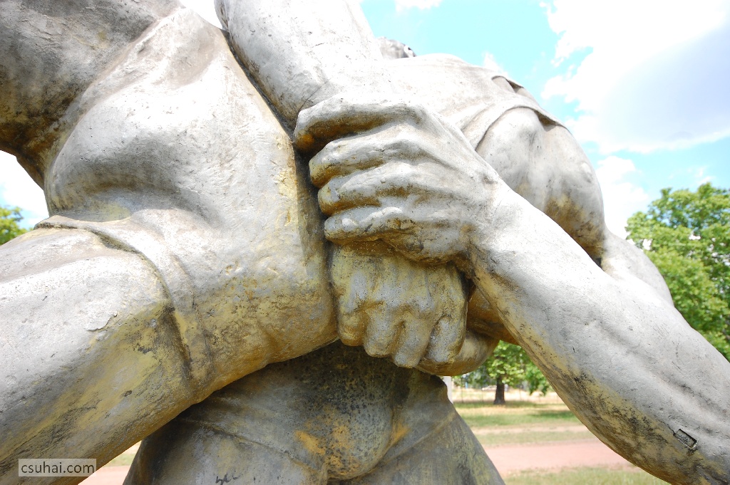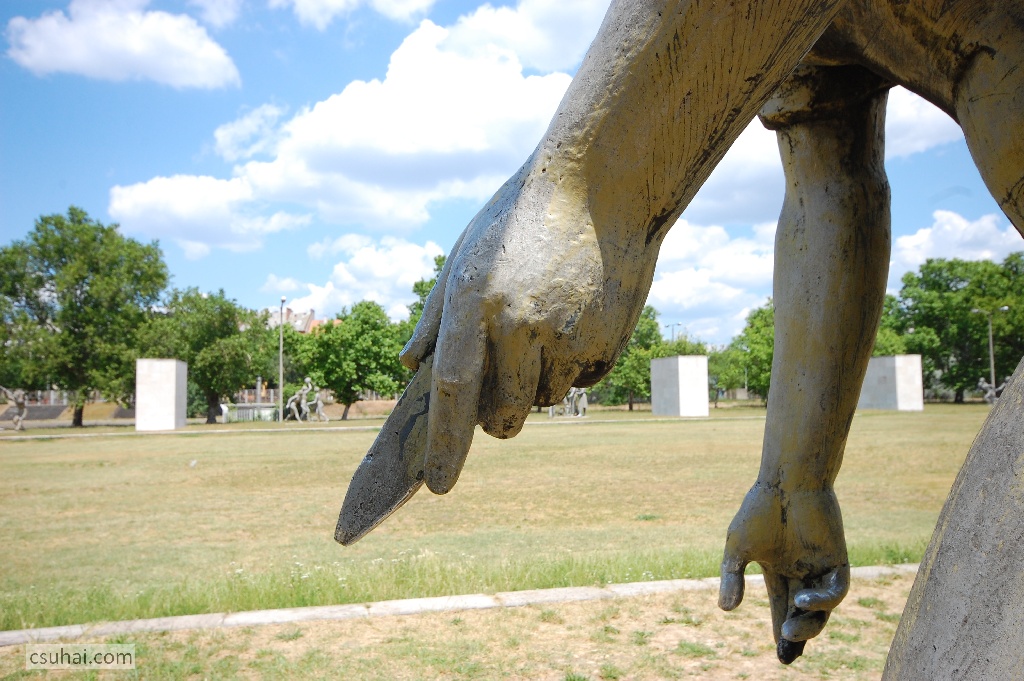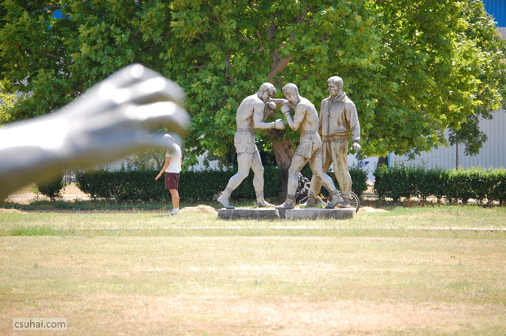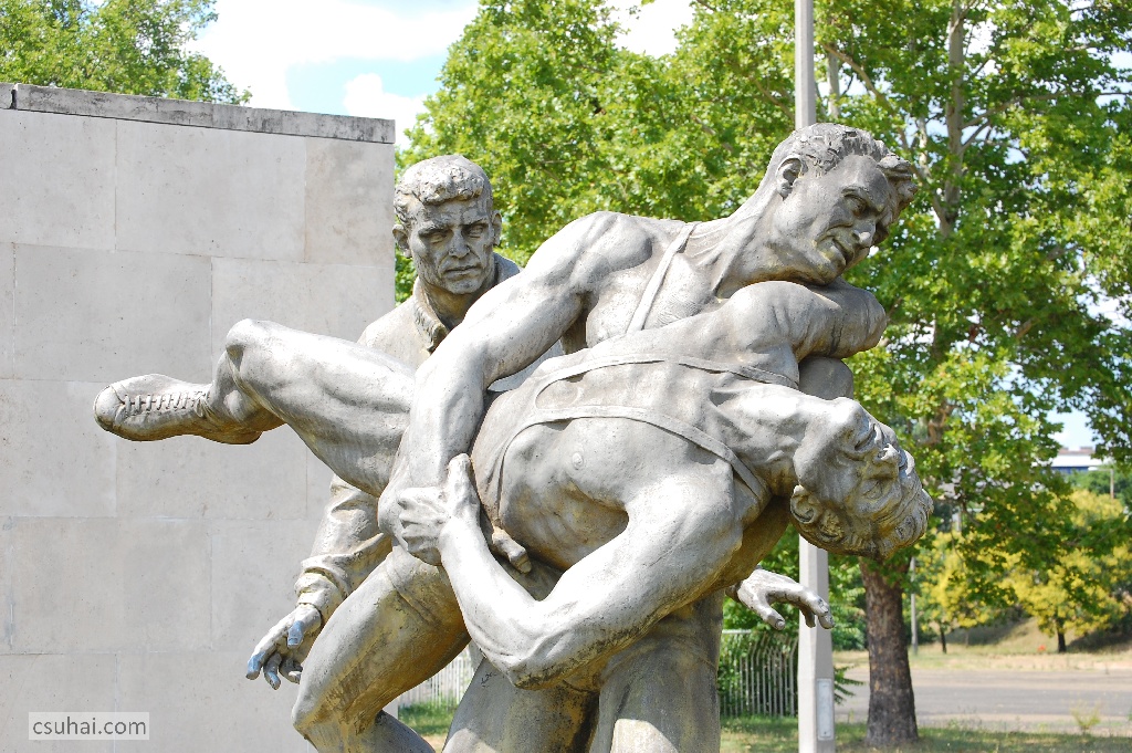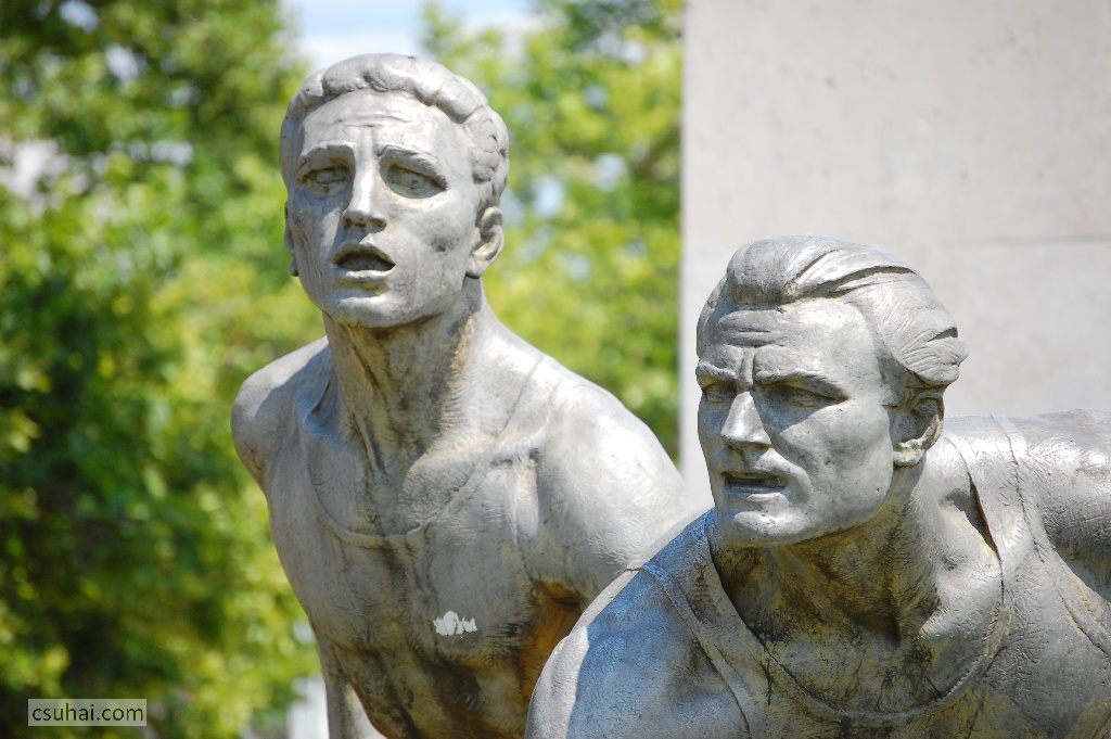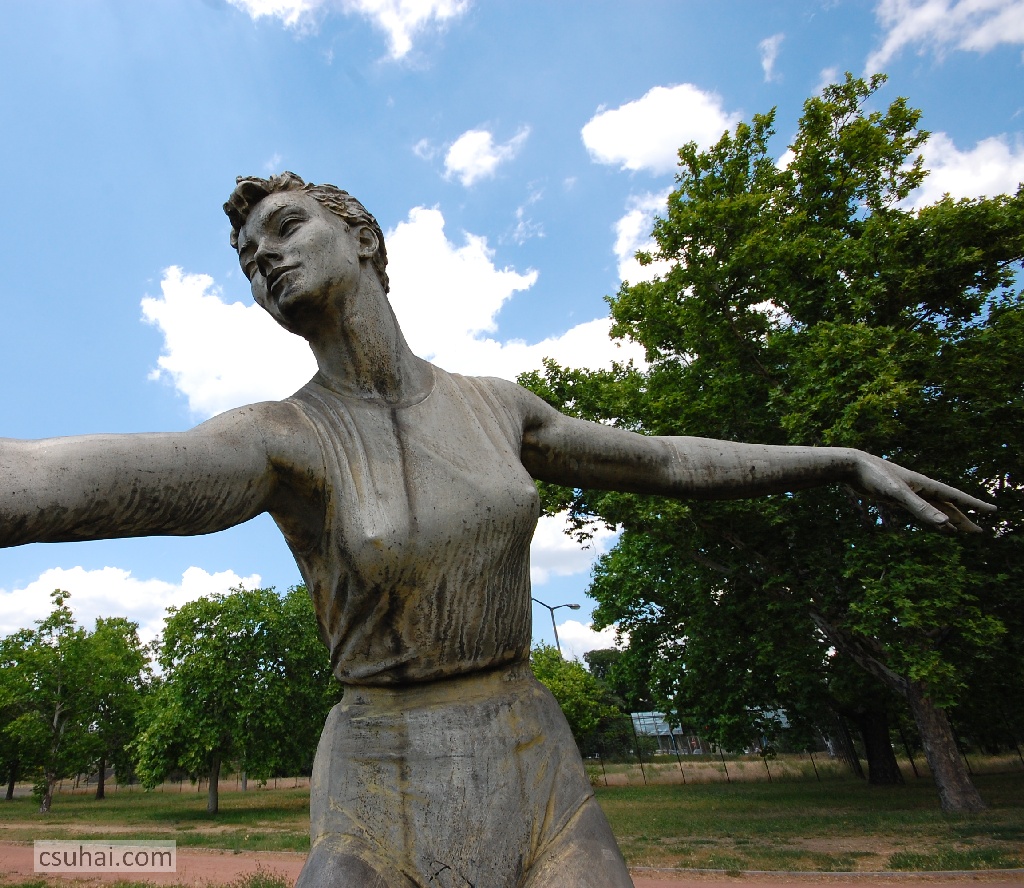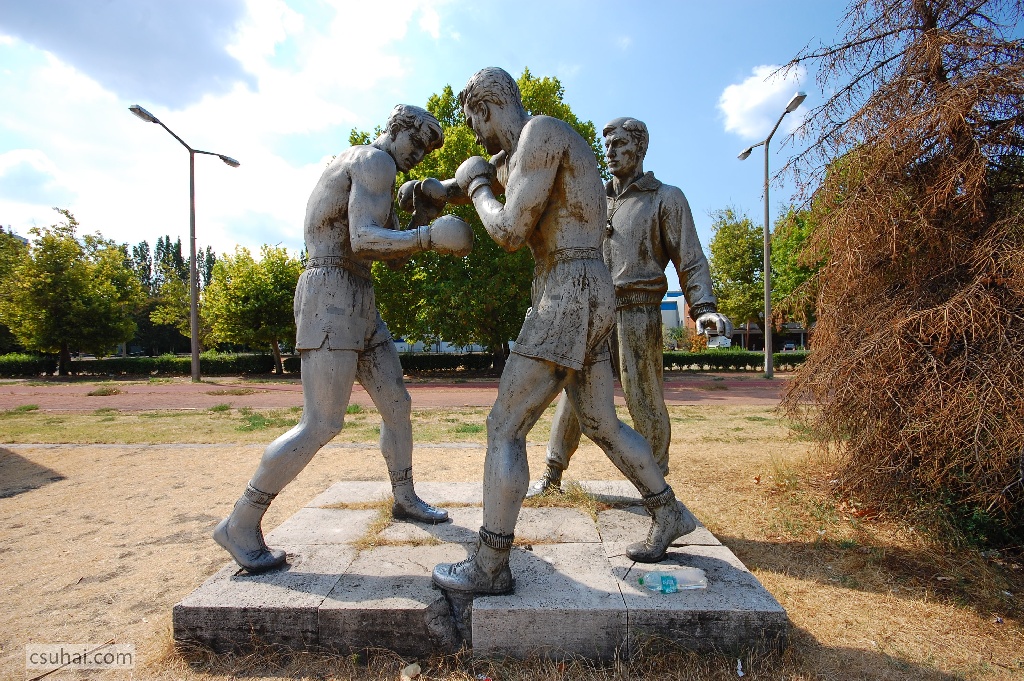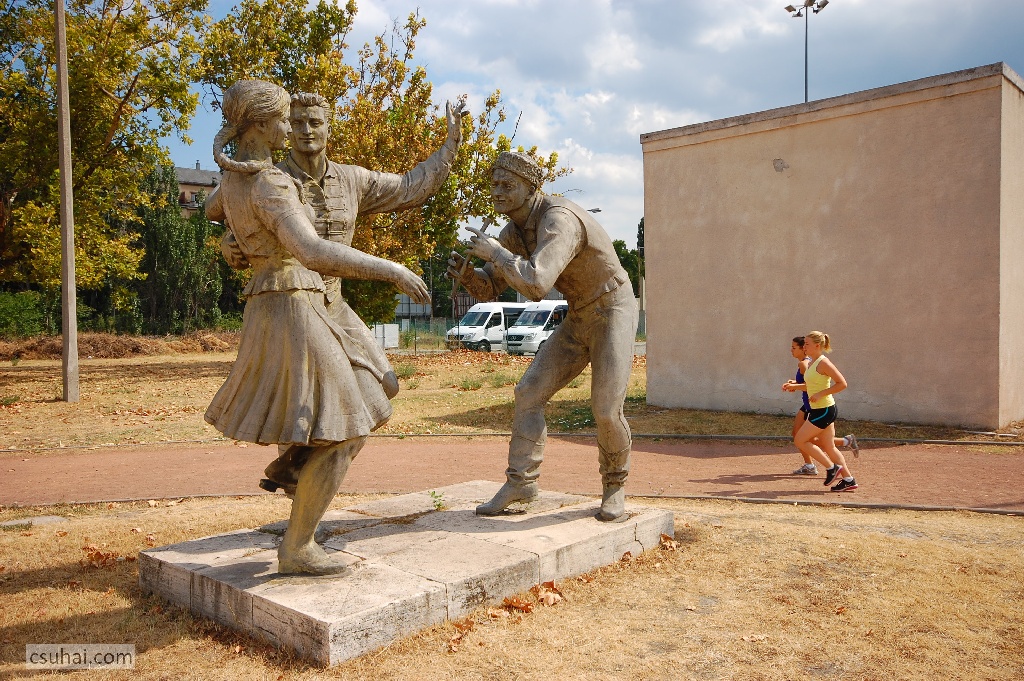 Az utolsó négy júniusi bejegyzésem (két favicc és két Röviden mondd) szándékom szerint megelőlegezte ezt a mostani posztot, melyet régebben megígértem, és amelyben olyasmiről lesz szó, amivel a blogban korábban is foglalkoztam. Mivel hatalmas nagy téma ez, azt hiszem, a Népstadion dromoszának szoborparkja ügyében nem is ez a mostani lesz az utolsó szavam. Előre kell bocsátanom, hogy a dromosz szobrait illetően legfőbb forrásom és mindenkori ihletőm Mikes Balázs kiváló, a Köztérképen olvasható összefoglaló írása (maga a kifejezés, a stadion bejárati díszsétányát jelentő görög szó is innen való), a hivatkozott oldalról könnyen el lehet navigálni a szobrokat egyenként bemutató műlapokra is. Ha valaki a szobrokra szabályosabb ábrázolásban az én fényképezőgépem objektívjén át kíváncsi, megtalálja őket itt, még 2010-ből, és szívesen ajánlok még egy bejegyzést a blogok közül, a Szerelmem, Budapest oldalon olvasható posztot (Hogyha elpihent a gép, miért ne tornáznál?), ahol a szerző további érdekességeket árul el a 16 szoboregyüttesről; mindegyikről saját felvétele is ott látható. Mind a három helyről kiolvashatóak a pontos címek, a közreműködő szobrászok, a felállítási évszámok.
