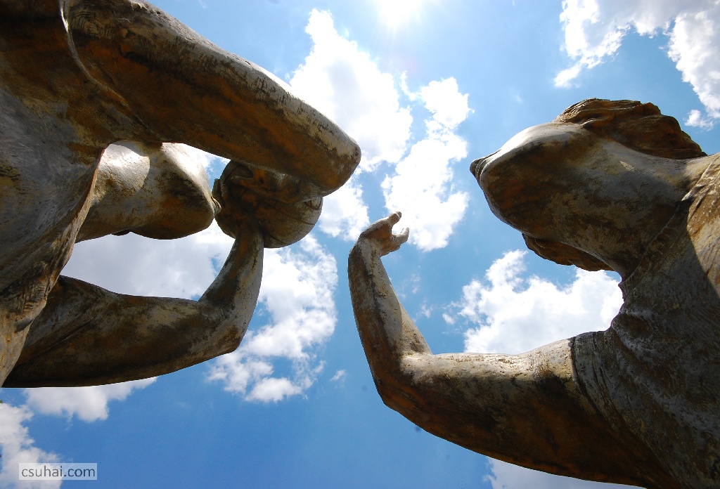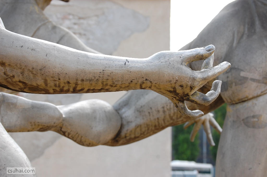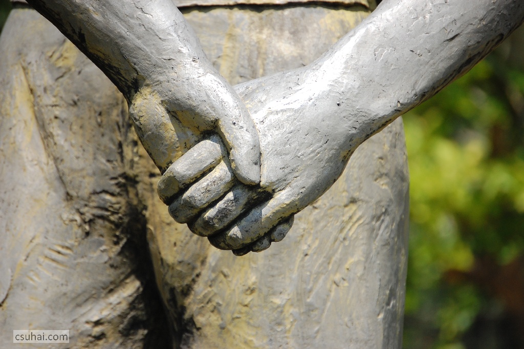 Összekapaszkodni márpedig kell, ne felejtsük, a kor, melyben ezek a szobrok létrejöttek, ugyancsak az összefogás rendszere volt, és most már a saját tapasztalatunkból is tudjuk, az összefogáshoz vállakra, karokra, kezekre van szükség. Kezdjük tehát ezekkel.