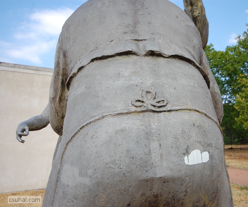 Nini, futók! De ha már ilyen emberes képpel kezdődik, legalább fogalmat alkothatunk ezeknek a vaskos-böhöm behemótoknak a valóságos méreteiről, arányairól. És még ez a méretarány sem teljesen igaz mindegyik csoportra, Somogyi József Lovacskázókja például minden tekintetben kilóg a sorból, a szobrász három figura helyett hatot szerepeltet, a két egymással birkózó fiúpárost kiegészítette egy anyukája nyakában ülő kislánnyal, tematikusan is eltér a többiektől, hiszen családi idillt ábrázol, afféle strandjelenetet, nem pedig valamilyen közösségi vagy sporttevékenységet, ráadásul a szoborcsoport mérete is kisebb a többinél, mintha Somogyi elunta volna a gúzsba kötő szabályokat, s ezt megbocsátóan elnézték volna neki.