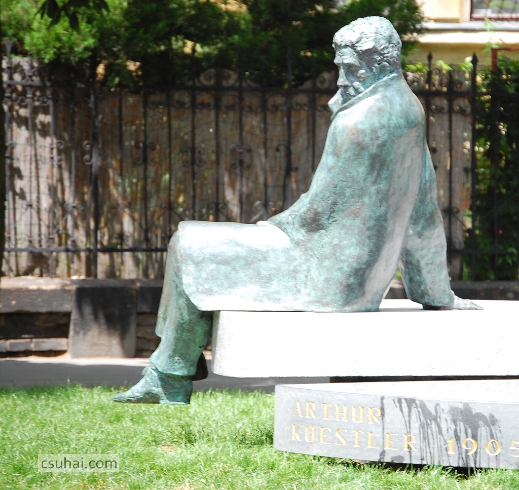 Koestler persze sohasem élvezte ennek a háznak az újabb kori vendégszeretetét, tizennégy éves volt, mikor apja családját 1919-ben Bécsbe telepítette. De élvezhette volna, ha az apuka nem előrelátó, és nem sejti meg fia nagy kalandját, liasonját és kiábrándulását a szovjet kommunizmusból. Első irodalmi próbálkozásait még magyarul fogalmazta, az 1940-ben először Londonban megjelent, legelőbb Franciaországban sikerre vergődött Sötétség délben-t németül; a későbbi években, Londonban élve, angolul írt.