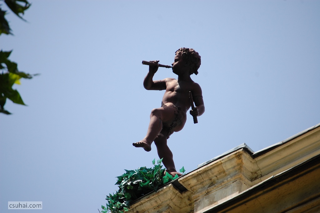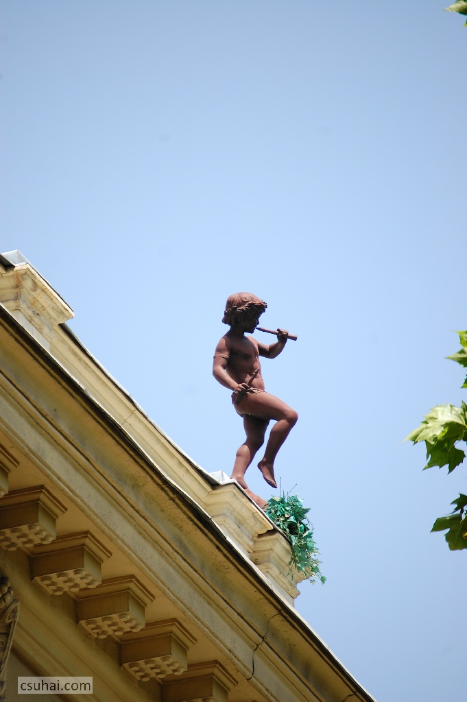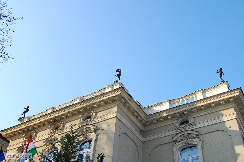 Három sípoló, táncoló, egy méternél nem magasabb alak a Városligeti fasor egyik épületének homlokzatán. Valamikor négyen lehettek, de ma már csak három táncol és furulázik közülük, kettő a kiugró rizalit párkányának két szélén, egy jobb oldalt, a homlokzat sarkán. A negyedik faun és megalkotójuk kiléte tovatűnt valahol a történelem útvesztőiben.