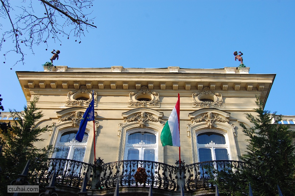 felirata: “Ebben az épületben volt 1945-1948 között a szovjet állambiztonság börtöne, ahol sok ezer ártatlan magyart kínoztak meg és ítéltek el hosszú évekre”. Nem véletlen tehát, hogy az 1905-ben a Terézvárosban született Kösztler Artúr szobrát, aki Arthur Koestlerként világhíres író lett, alig pár lépésnyire állították fel ettől az épülettől.