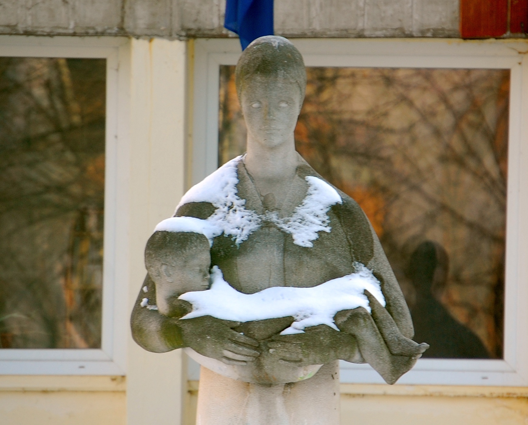 aztán Kiss Sándor Anya és fia című szobra a Heim Pál Kórház kertjében,