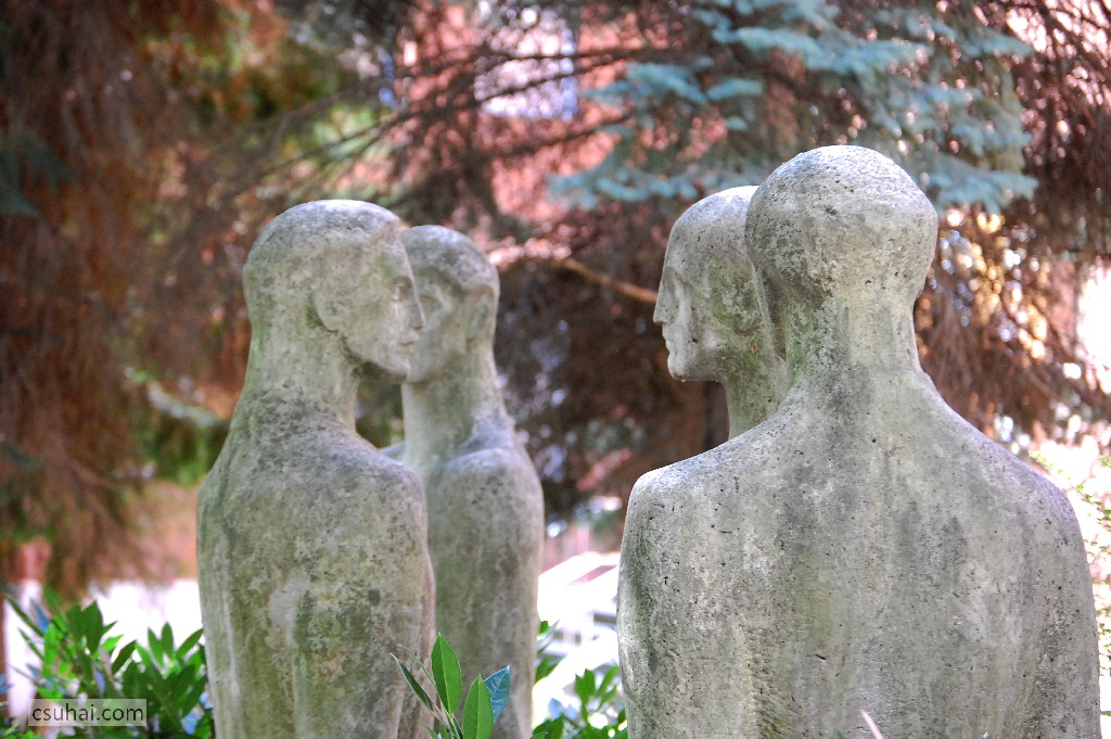 Az összevetés jellegű elemzés jön itt, s az egész szíve-közepe a két szoborcsoportba foglalt “plasztikai” beszélgetés, kommunikáció, “tanácskozás”, hogy a kaposvári szobor címét vegyem kölcsön, mindaz, amit ezek a figurák ily módon, azon a kompozíción keresztül, melynek egyenként részei, alkotóelemei, egymás között folytatnak, hiszen szemmel láthatóan alkotójuk számára is ez a szobrászati-megformálási kihívás volt a tét. Külön most nem foglalkozom Kiss István pályaképének felvázolásával, aki erre kíváncsi, megtalálja itt.