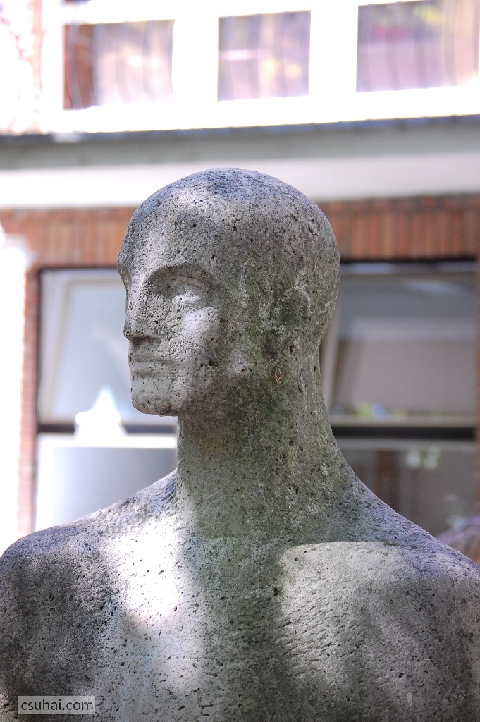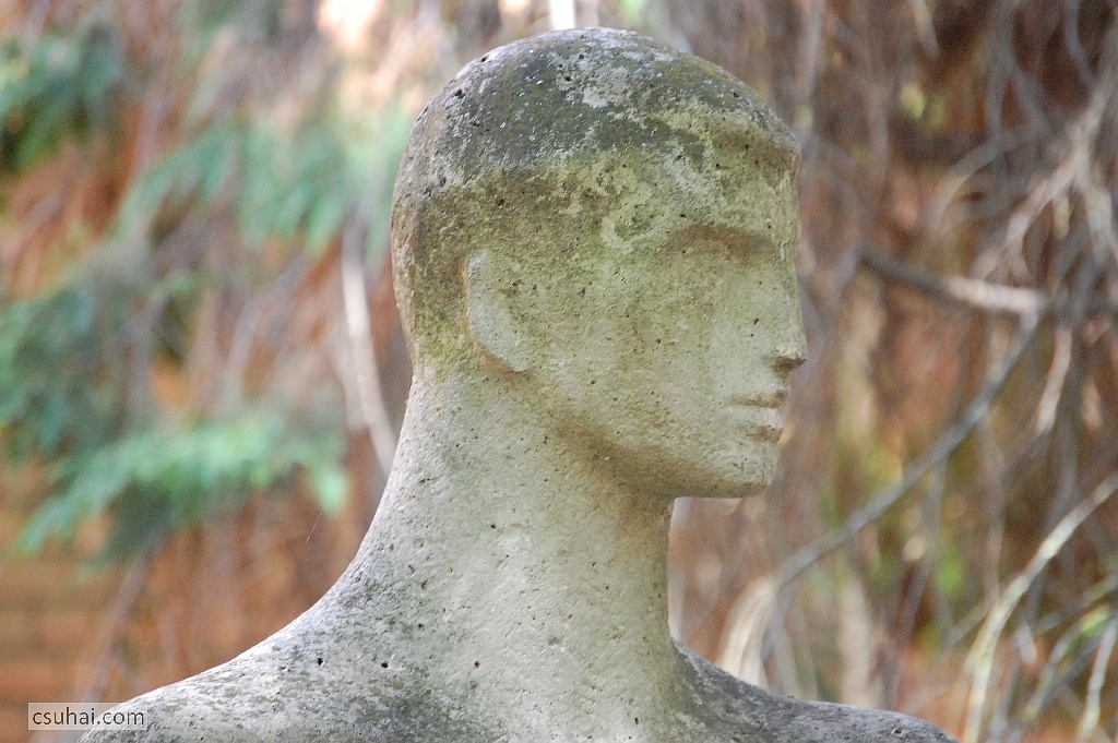 Fontos különbség a két szobor anyaga, a most már megkopott, átszíneződött kaposvári mészkő,