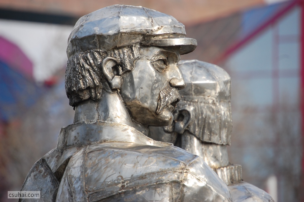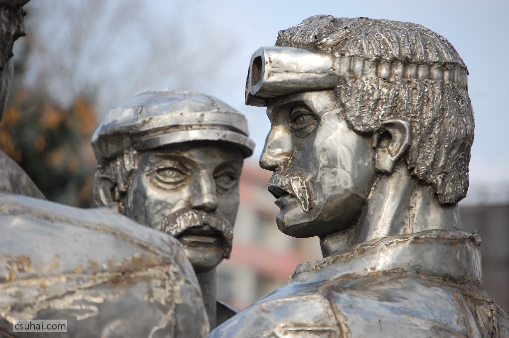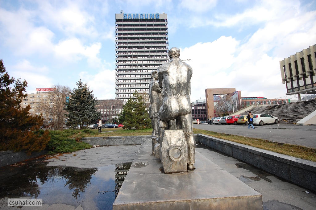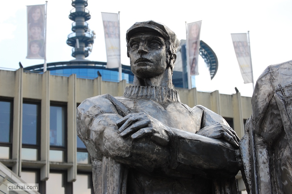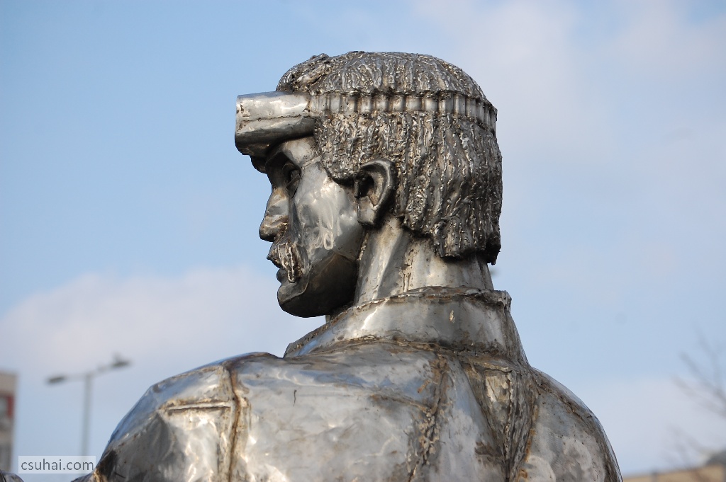 Kiss István két szobra következik, az egyik mészkőből készült, Kaposvár belvárosában állították 1963-ban, az ottani szakszervezeti székház előtti terecskén, a másikat majdnem két évtizeddel később, 1982-ben, igen reprezentatív helyen, az angyalföldi pártbizottság székháza előtt a Váci út elején, és hegesztett krómacél az anyaga.