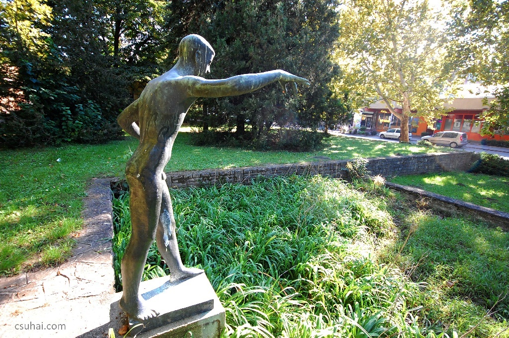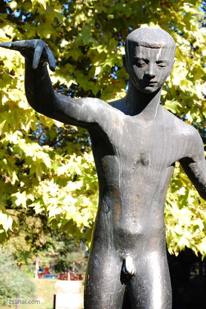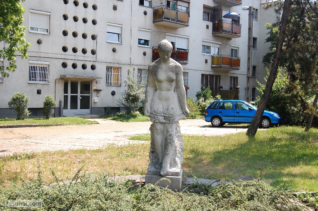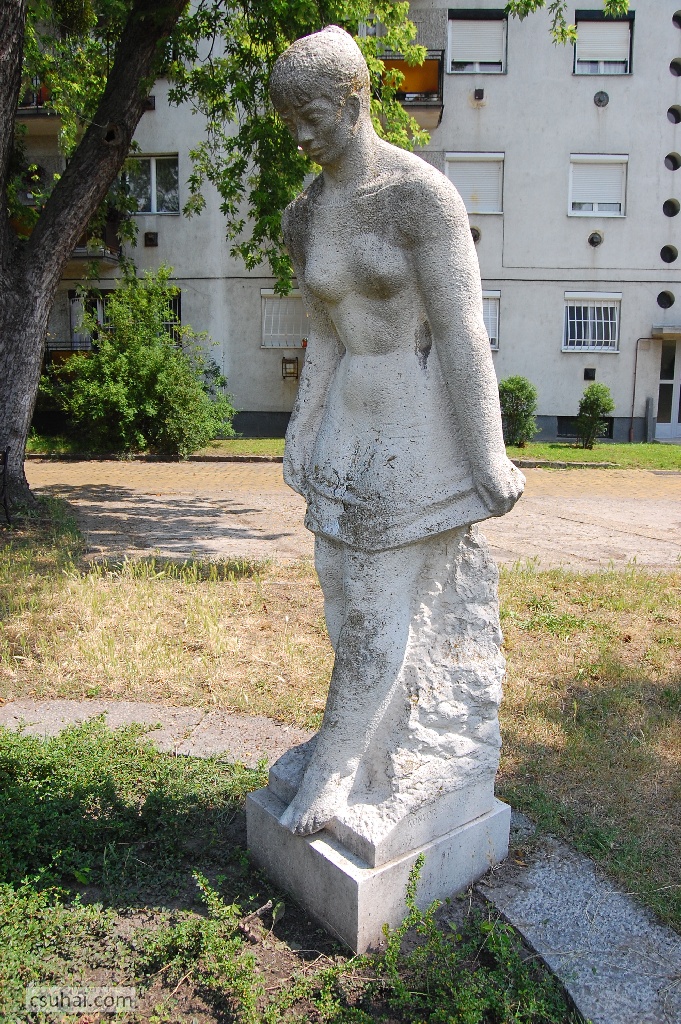 Három szobor következik, egyfelől születési idejük, a hatvanas évek sorolta őket egymás mellé. Metky Ödön Lány galambbal című szobrát 1961-ben állították fel Balatonlellén, Konyorcsik János Vízbe lépő nőjét 1965-ben Újpesten, Brém Ferenc Követ ejtő fiúját a hetvenes évek közepén Tatabányán, de a szobor alapzatába vésett évszám jól látható, 1966, ez is ebben a korban fogant tehát. De ez a közösség még nem lenne elég, a másfelől a fontosabb: mind a három szobor vizes medence szélére lett kitalálva, az archív képeken jól látható, hogy eredetileg úgy is álltak. Az elmúlt fél évszázad azonban kiszivattyúzta körülük a vizet, és mivel a teli vizes medence olyannyira kompozíciójuk része volt, mára akár a “piedesztálról levéve” rovatba is beférnének.