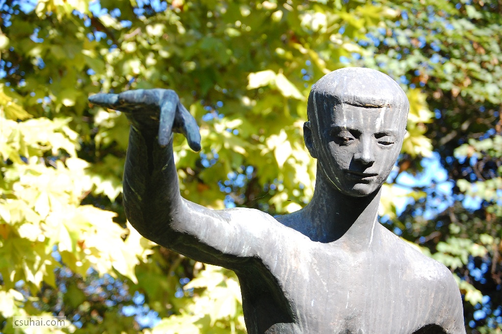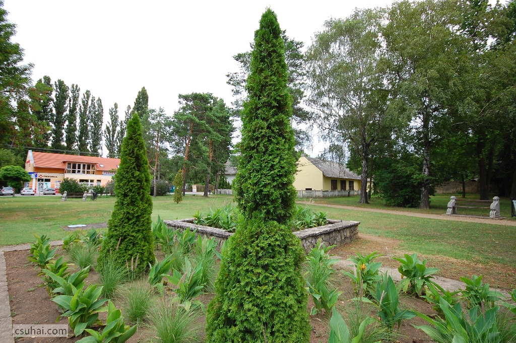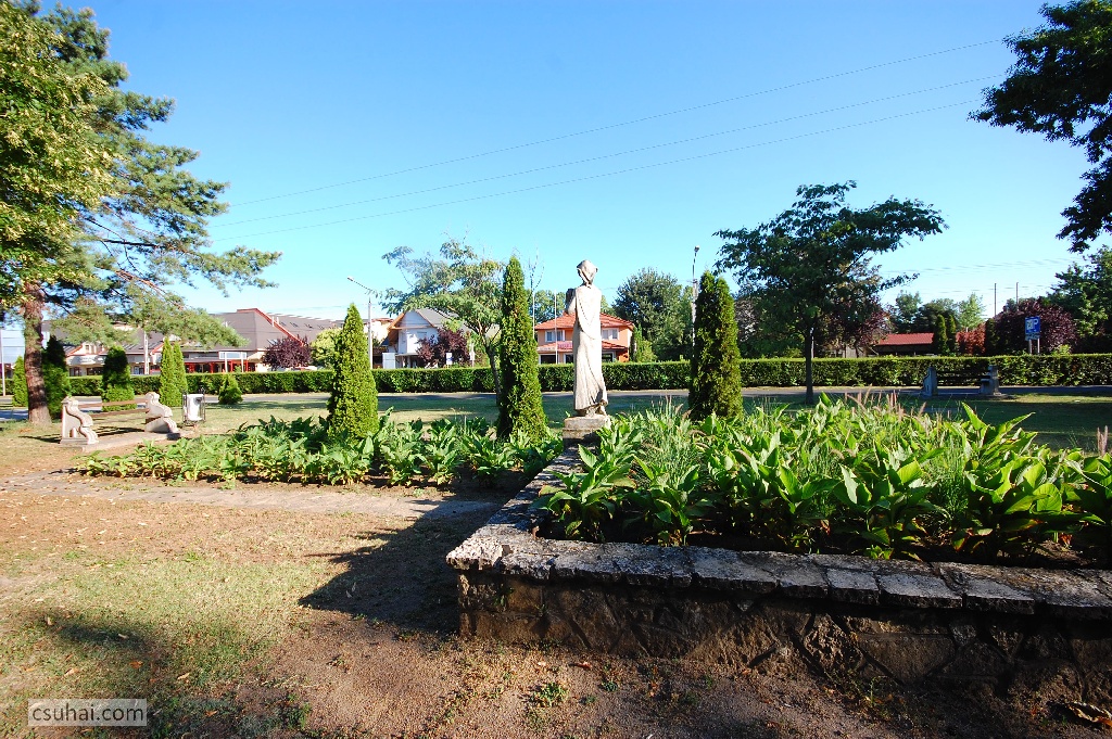 A kis park gondozói amúgy szellemesen oldották a szobor környezetének zöld, a nyár előrehaladtával nyilván sárguló ridegségét,