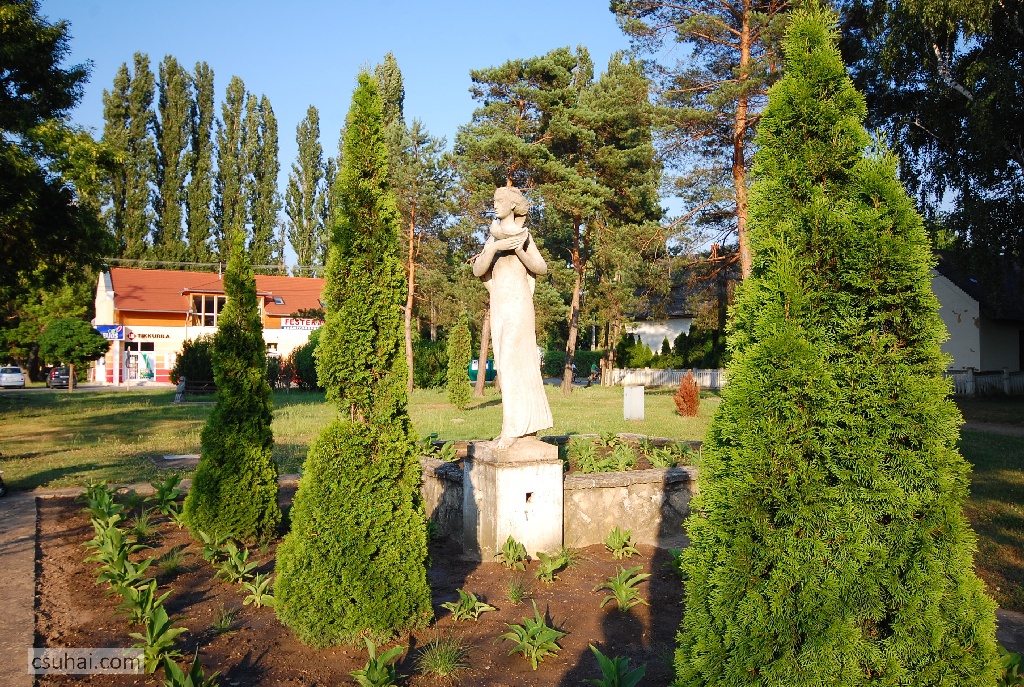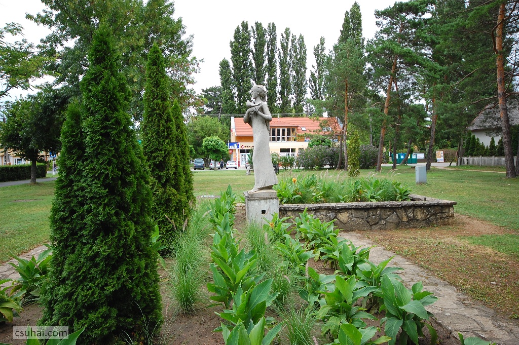 a balatonlellei szoboralak újra ép madarat tart a kezében,