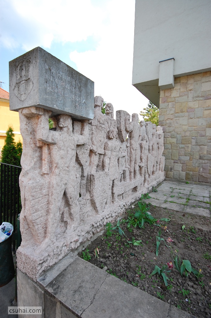Az időrendben első a három közül Kiss István munkája, Vácon állították fel, a Géza király téri 16 tantermes iskolaépület mellett, az elnyúló oldalfal meghosszabbításaként, és ma is eredeti feladatát látja el, vagyis ugyanúgy kerítésként létezik.