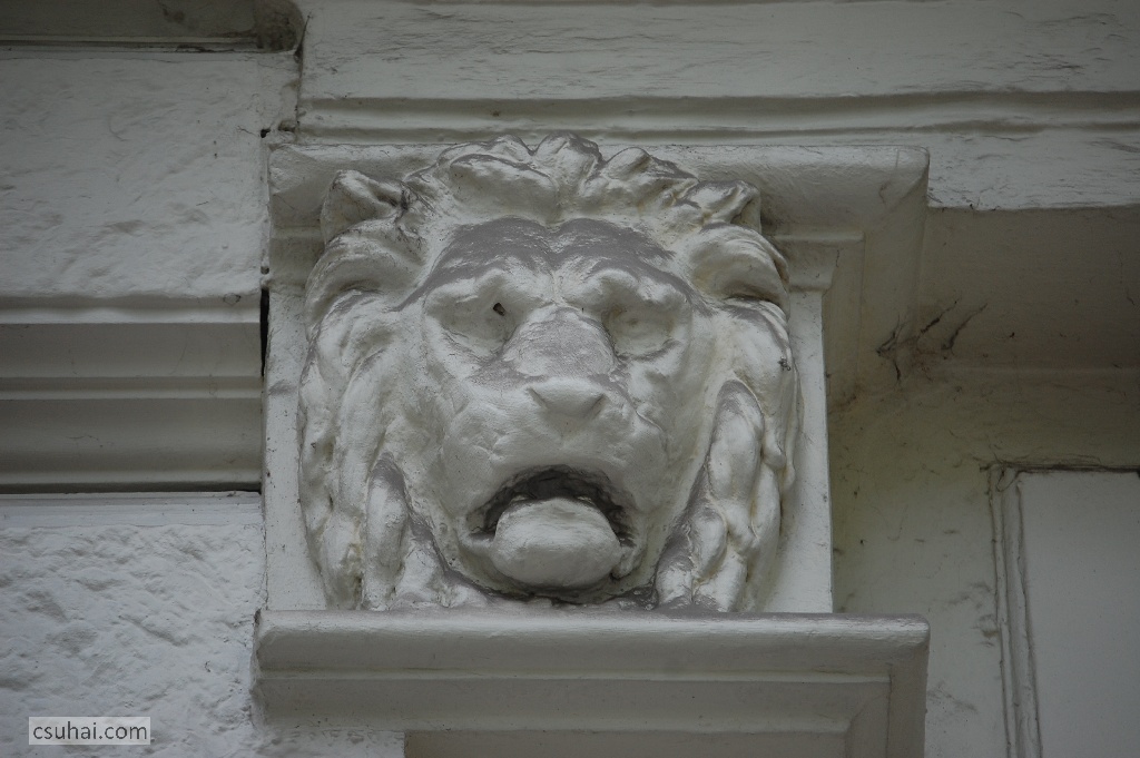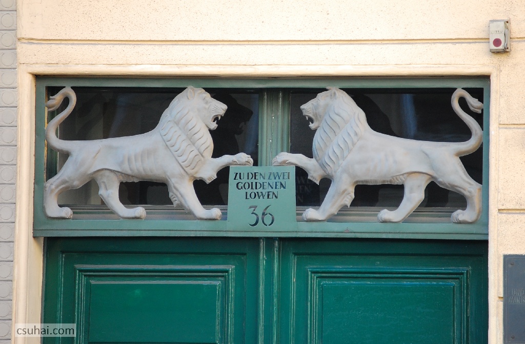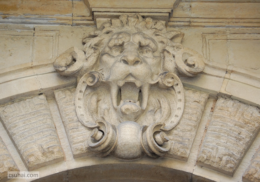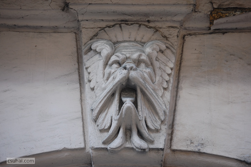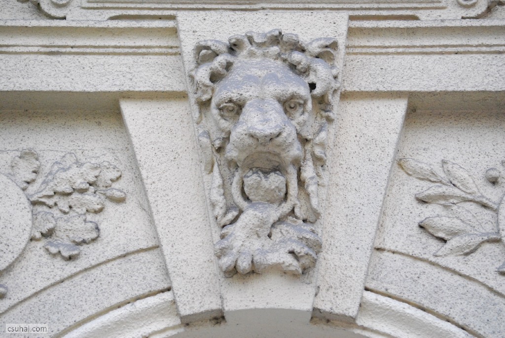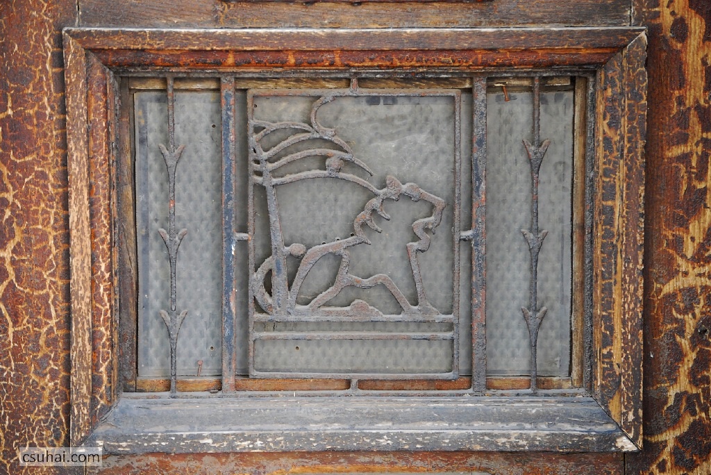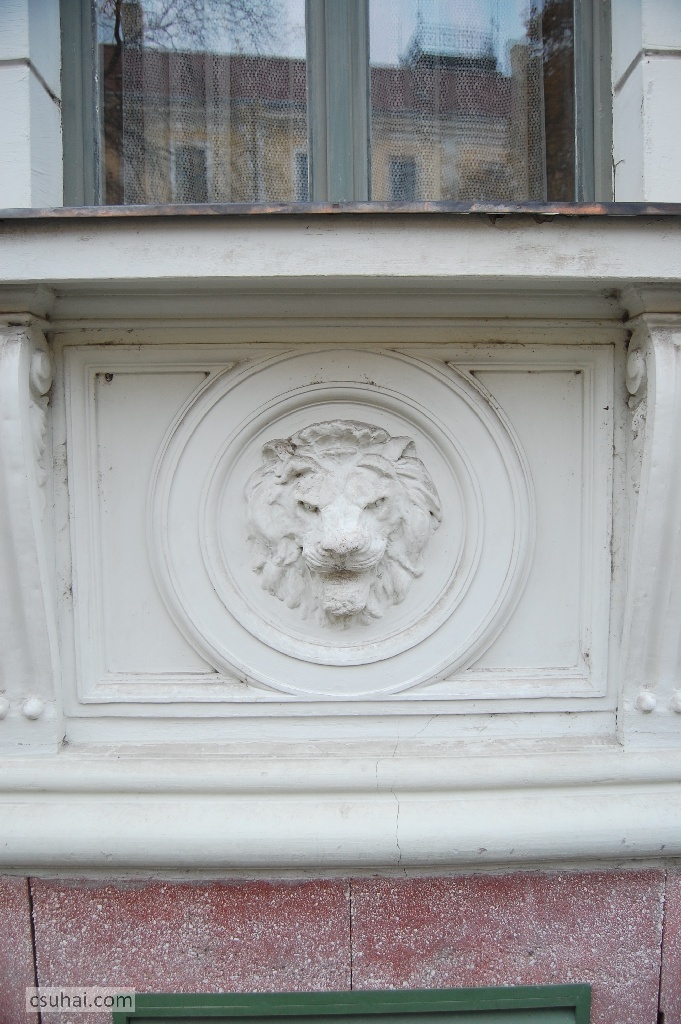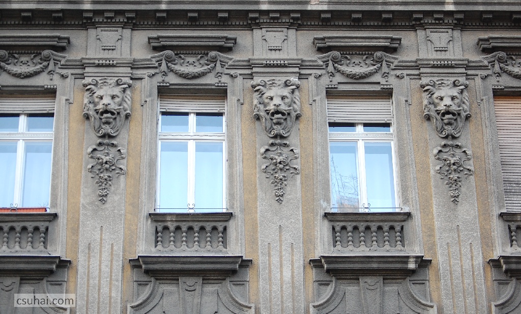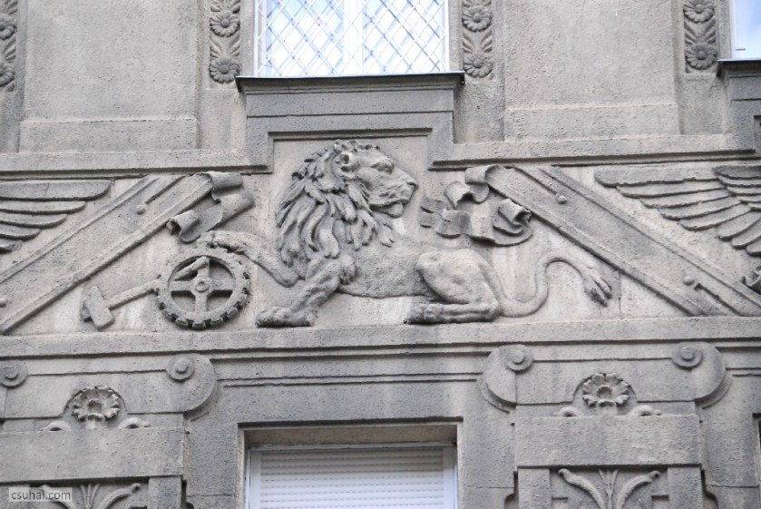 És ha már Cházár András utca, akkor az ELTE Radnóti Miklós Gyakorló Iskola kapubejárata, azon is a bejárati ajtók közül a középső, jobb alsó üvegkazetta előtti, oroszlánt ábrázoló rács,