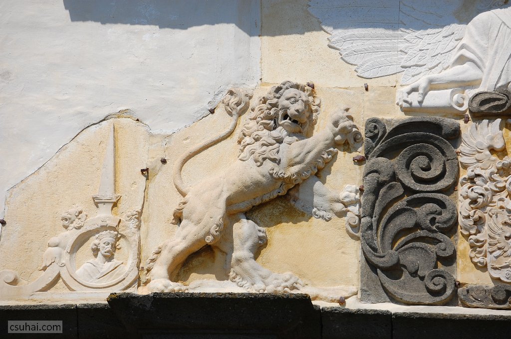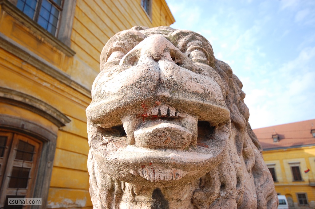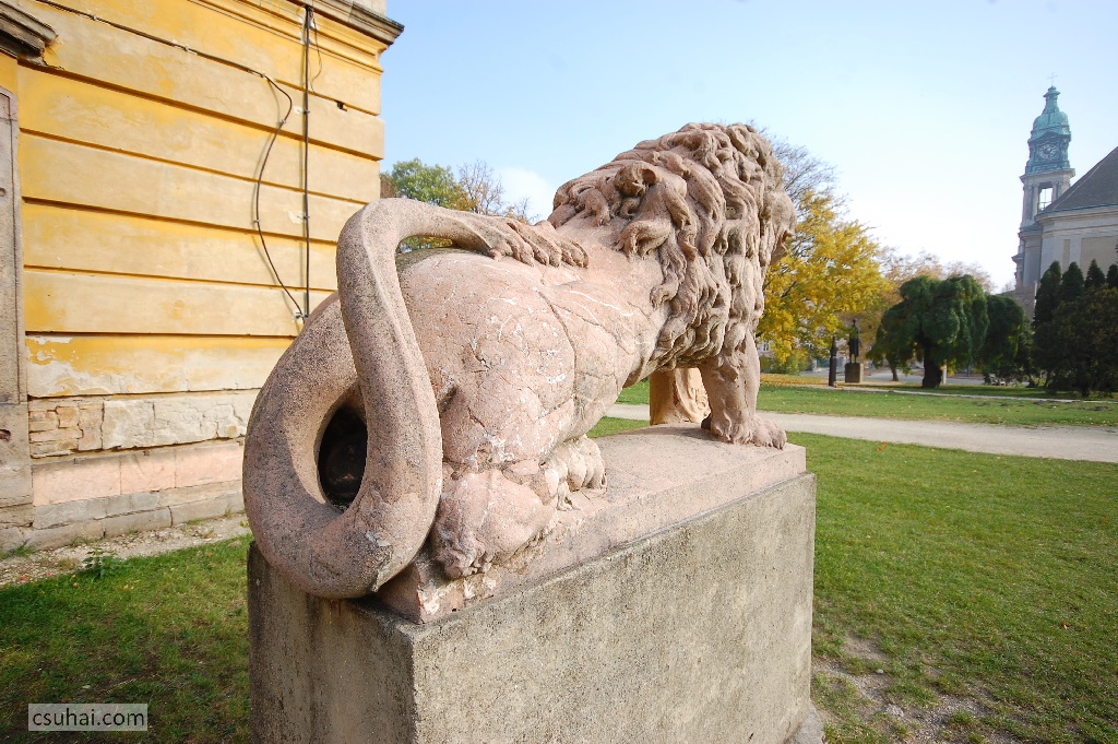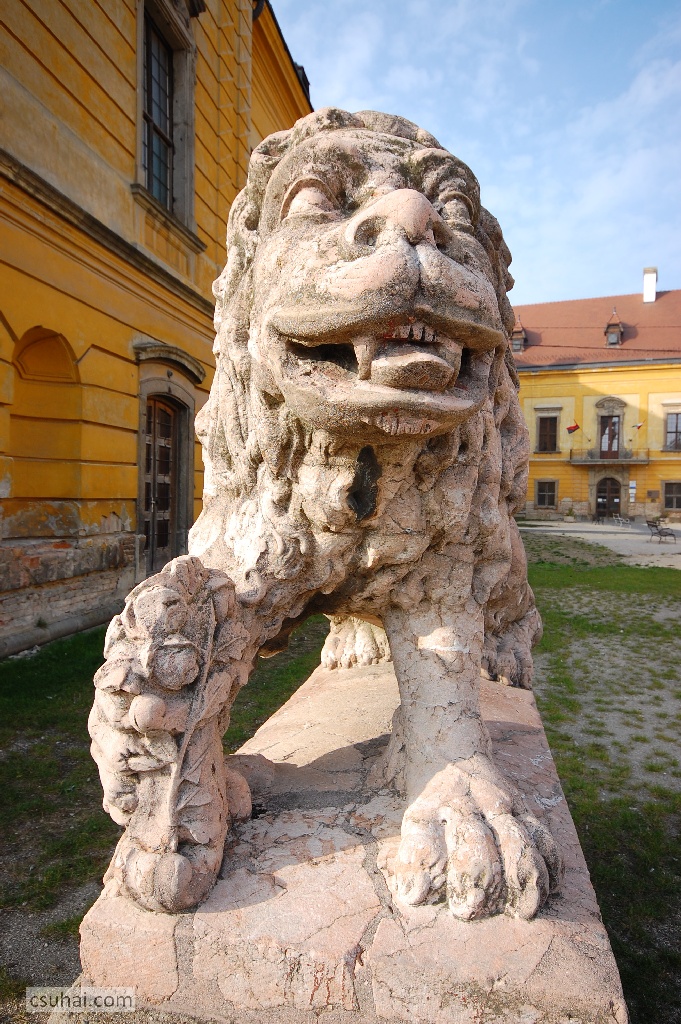 mint az ausztriai Güssing várának kapuját őrző két bojtos farkú dombormű-oroszlánnál, az egyik komoly, melankolikus alkat,