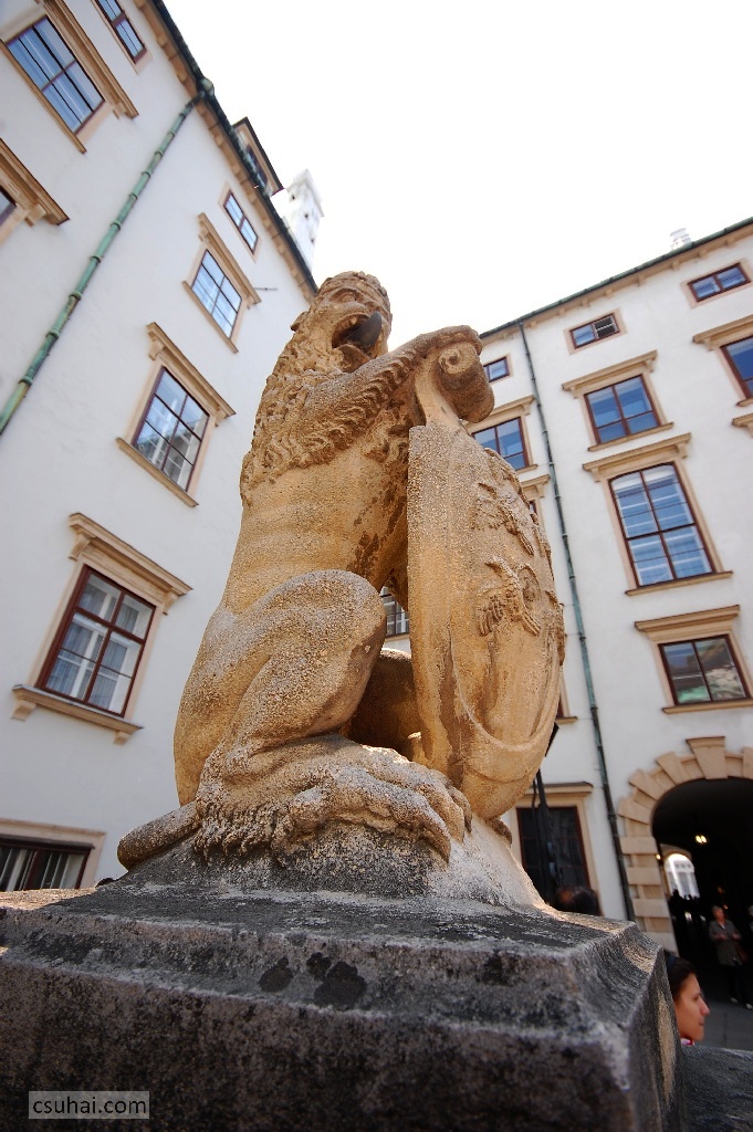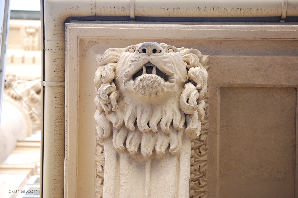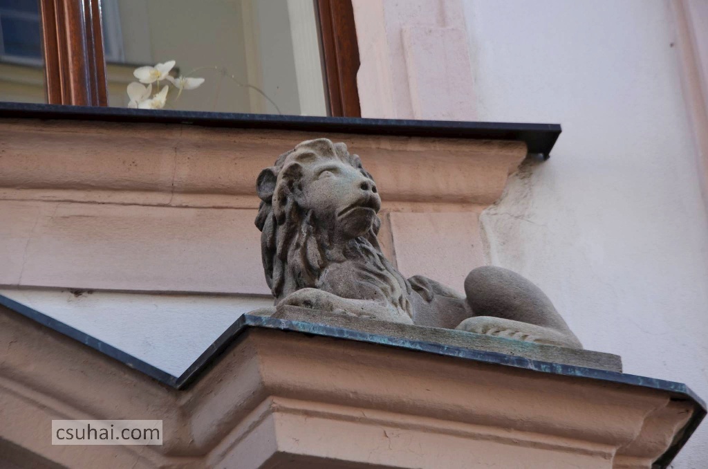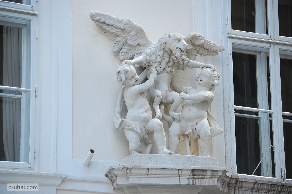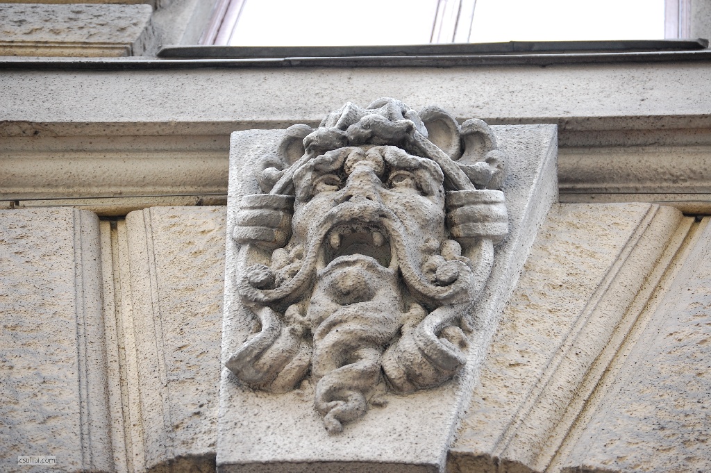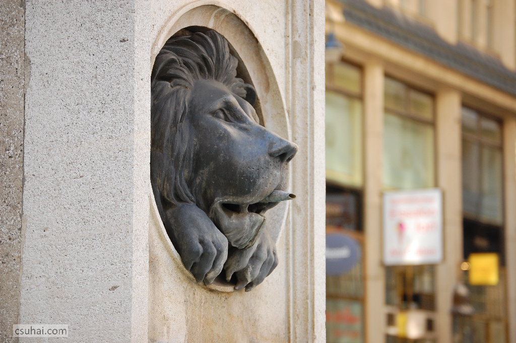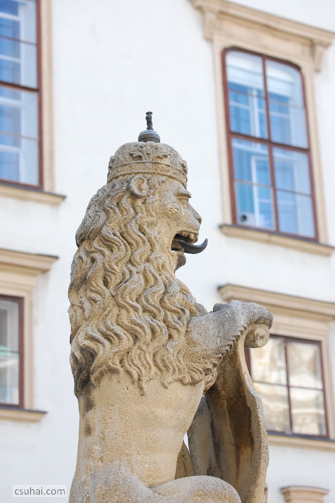 Legalábbis a Cseh Kancellária egykori épülete körül — ami egy bécsi oroszlánban vicces, tréfás, elrajzolt vagy ironikus, mint ez az ellapított oroszlánfej,