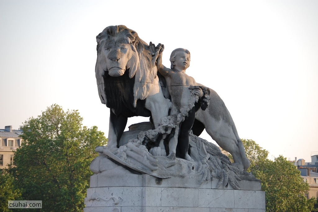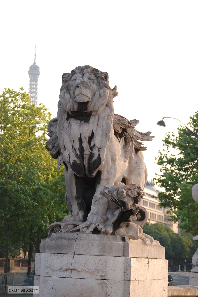 Párizsban, a világhódításban ugyanakkora ambíciójú, bár kevésbé hatékony birodalom fővárosában is van sétáltatott oroszlán,