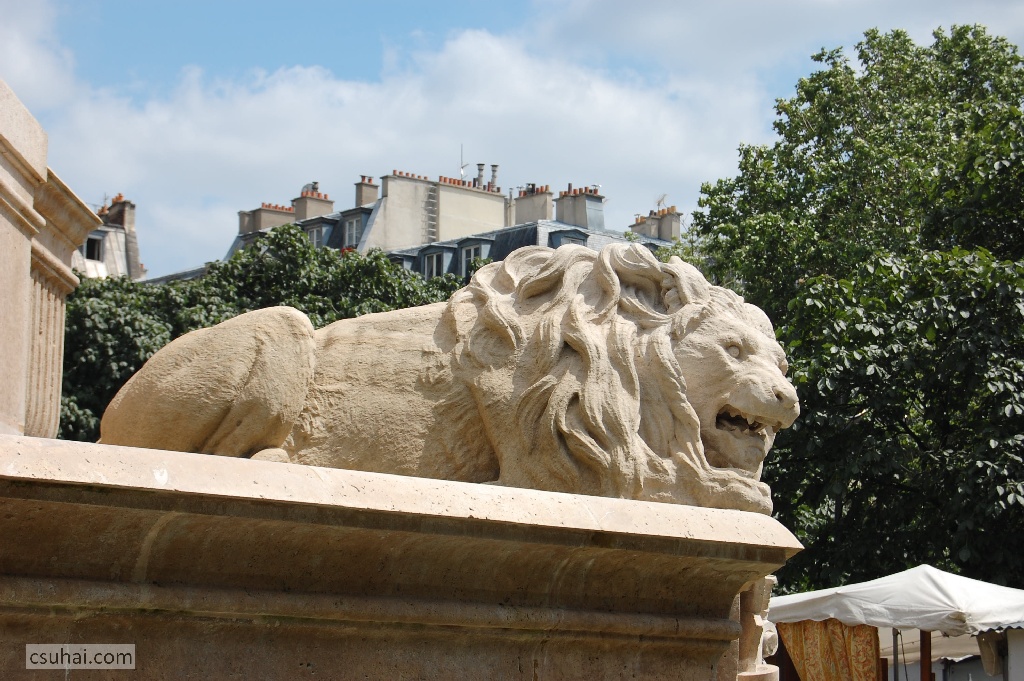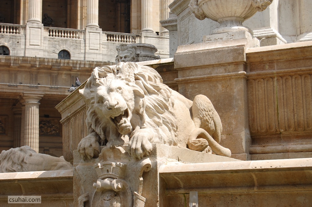 ahol a Négy püspök kútjából (Bossuet, Fénelon, Fléchier, Massillon lenne látható, mindegyikük lábánál egy-egy őrző) alig lehet kifényképezni Joachim Visconti 1844-48 között készült alkotásait, a négy oroszlánt