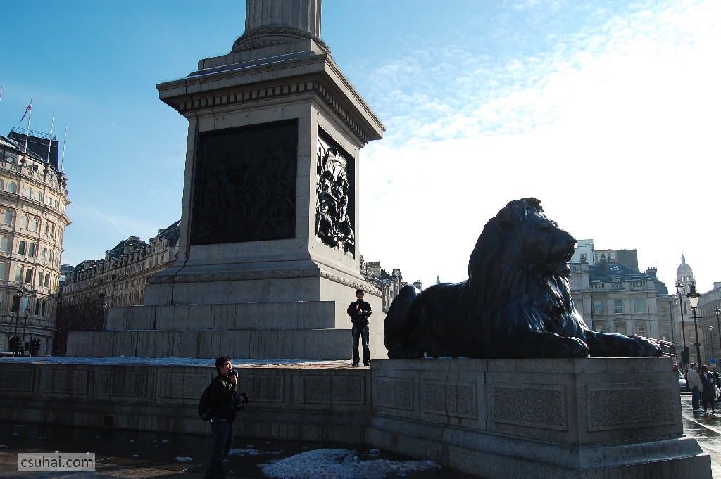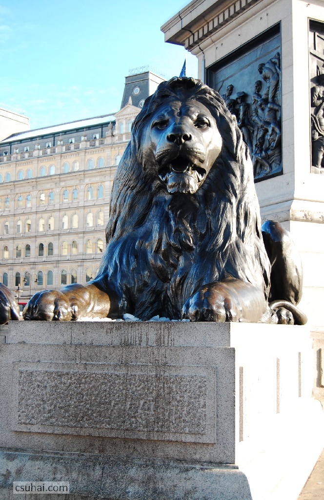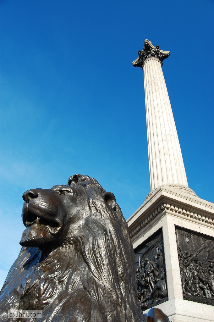 dehát Sir Edwin Henry Landseer négy, a Trafalgar Sguare-i Nelson-oszlopot körbefogó, újrapatinázott oroszlánja olyan gyönyörűséges a hétágra sütő londoni napban,