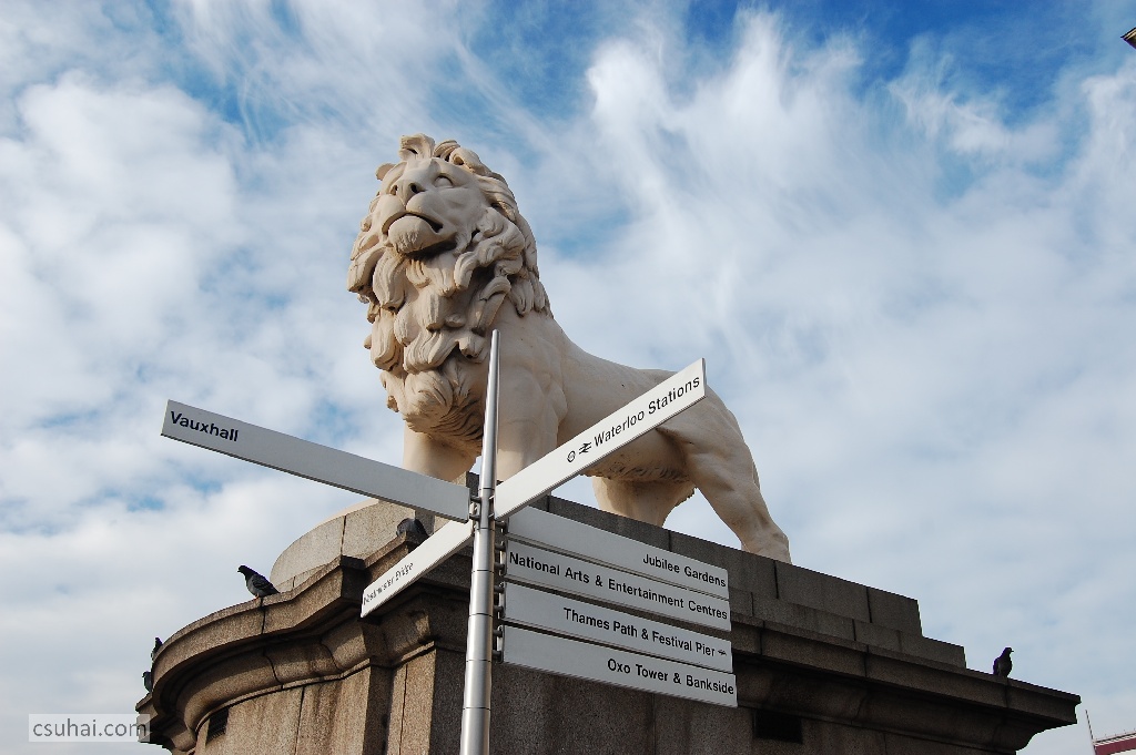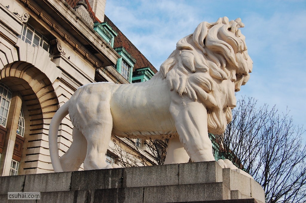 A másik szép, gyakran megnézett londoni oroszlánszobromnál, William F. Woodington a Westminster híd északkeleti hídfőjénél, a régi városháza oldalában álló szobránál az anyag a legérdekesebb.