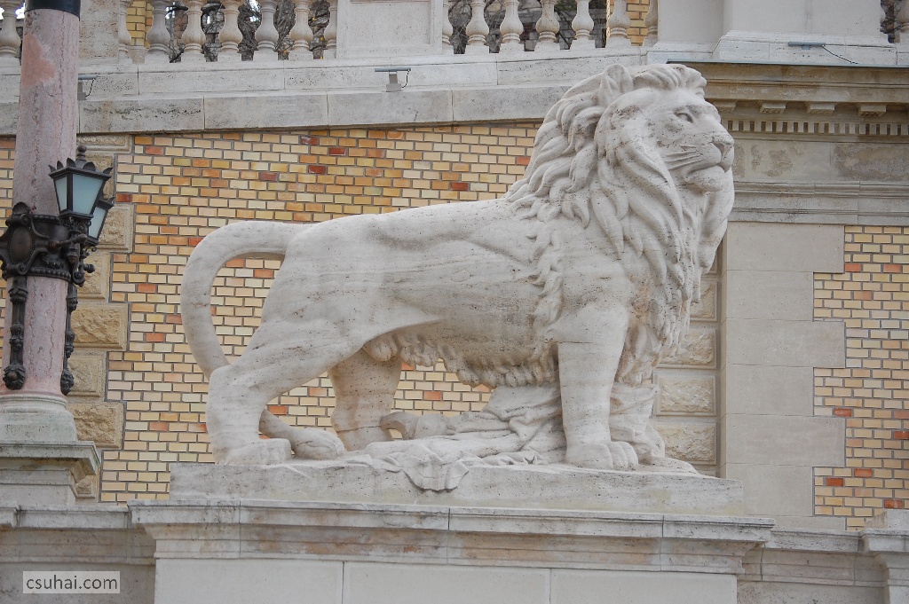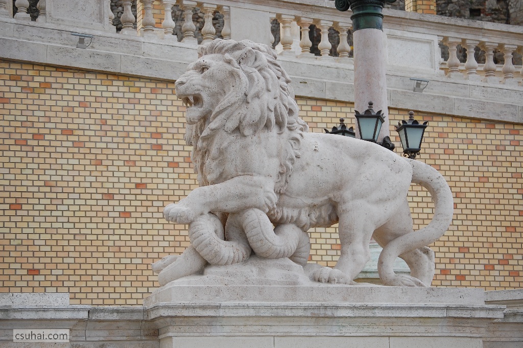 Ugyanez a hangulati kettősség érvényesül a Várkert Bazár két oroszlánjánál is,