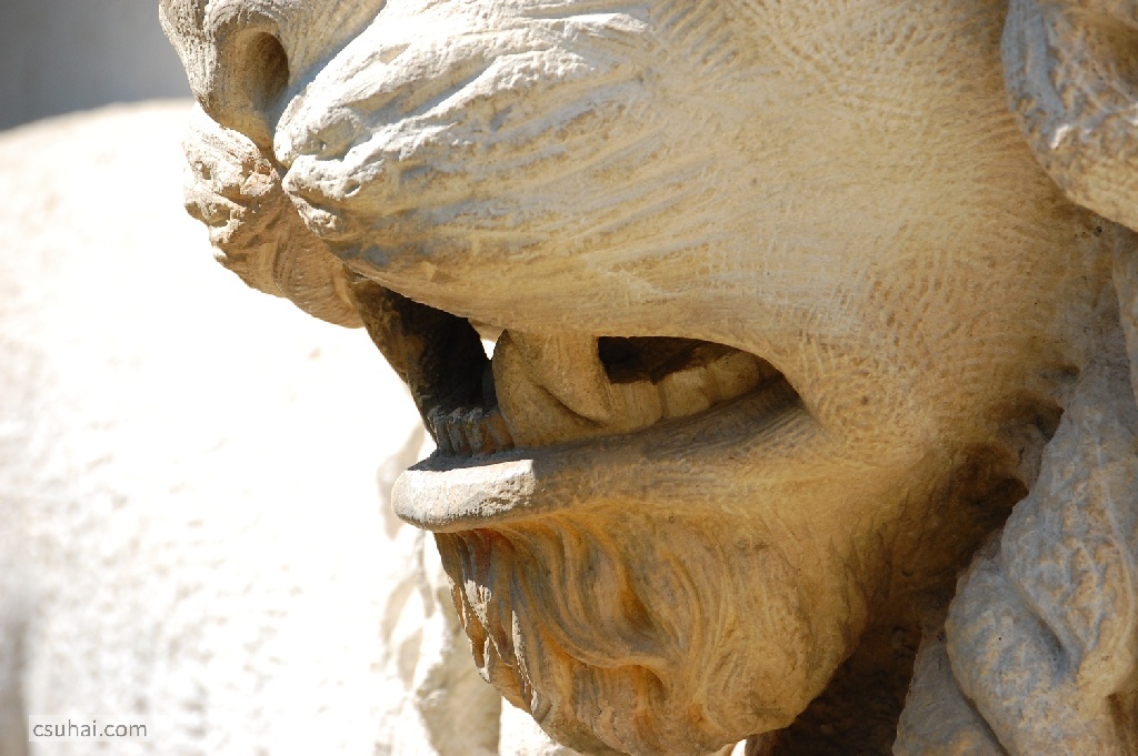 az oroszlán-szoborábrázolás mindenkori legvédtelenebb pontját, a bajusz kérdését oly bravúrosan megoldó vadállat.
