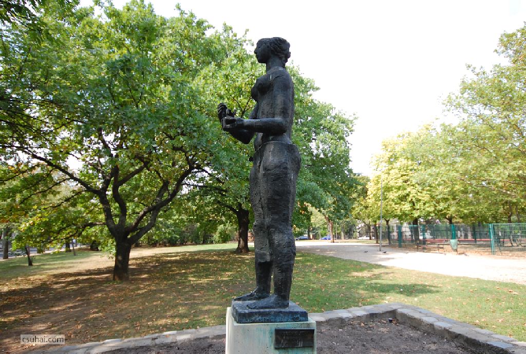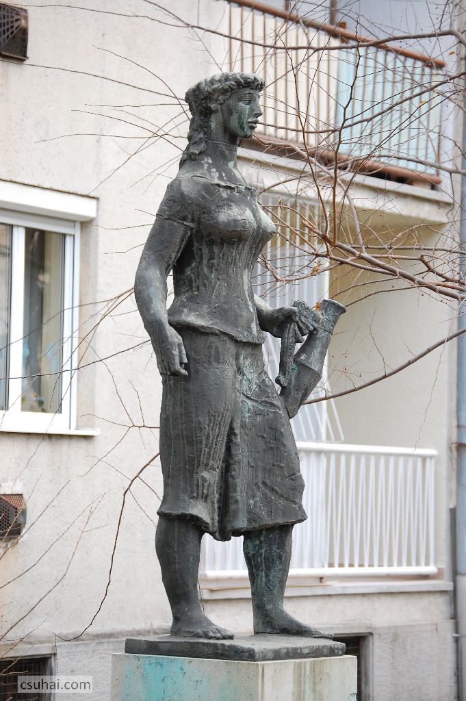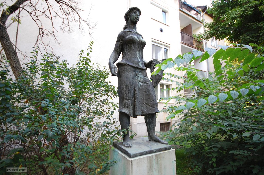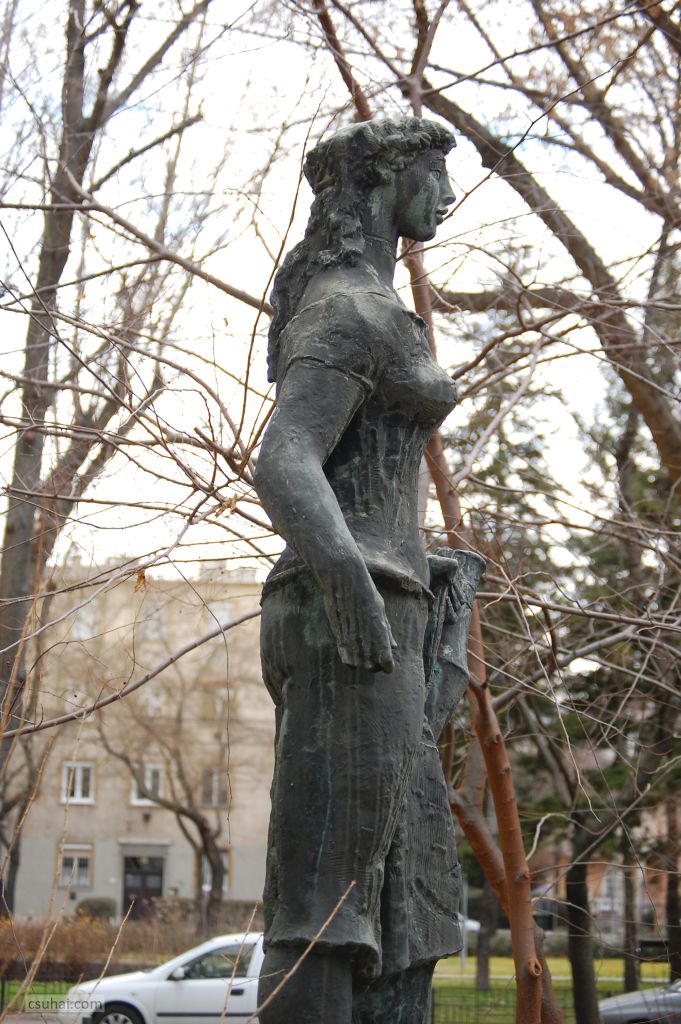 a harmadik a Korsós lány, Zuglóban (1967-ben állították fel a Torontál utcai lakótelep egy jellegtelenebb, még zsánerszobor elhelyezésére sem igazán alkalmas pontján),