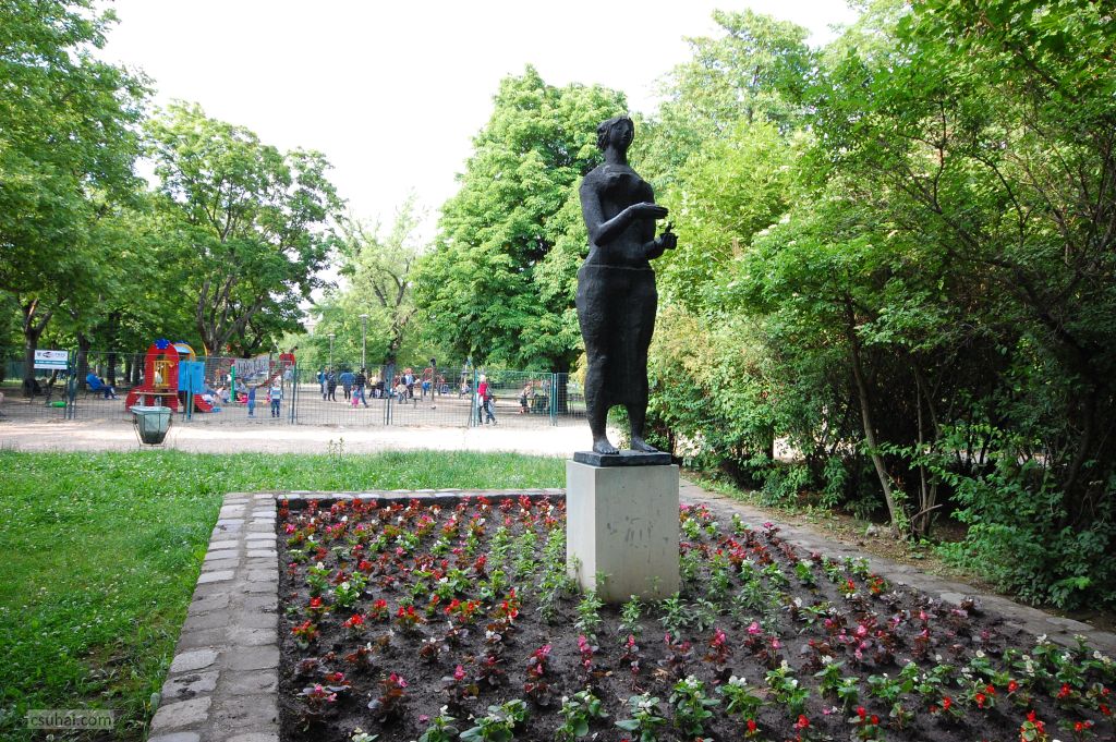 Mert más terekben áll mind a négy, a Lángot tartó nő egy szépen gondozott terecske és kis játszótér felől