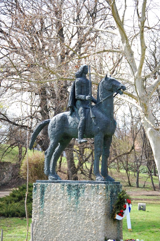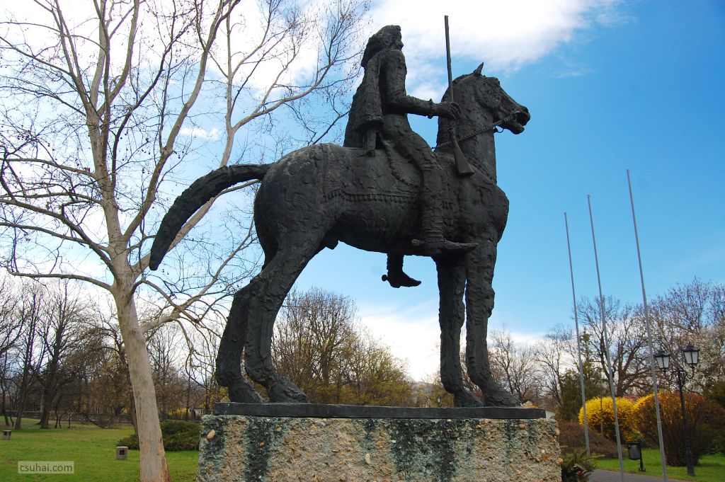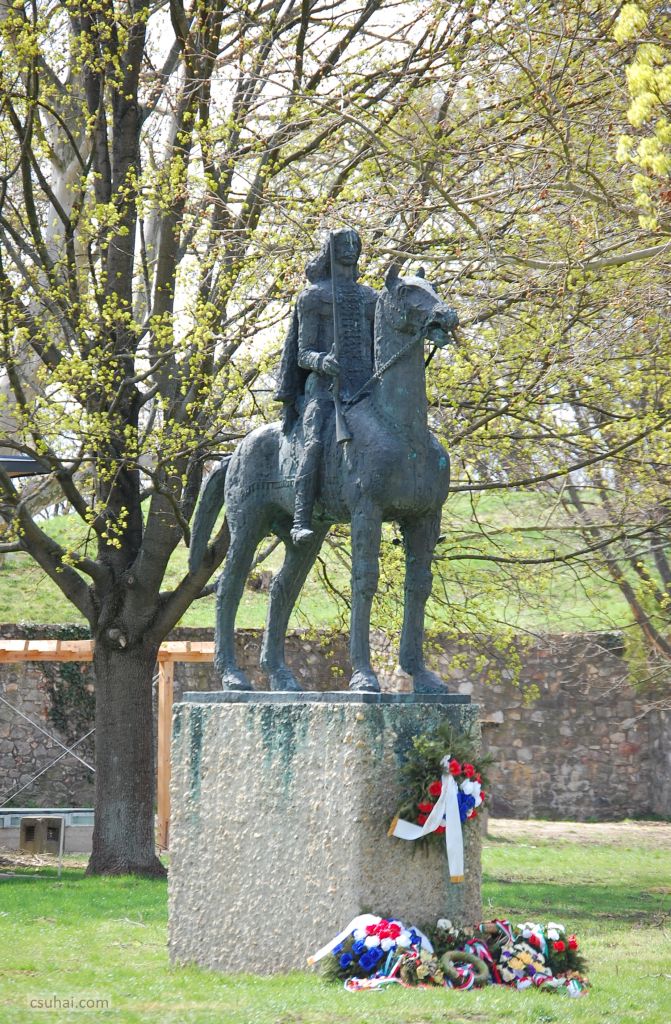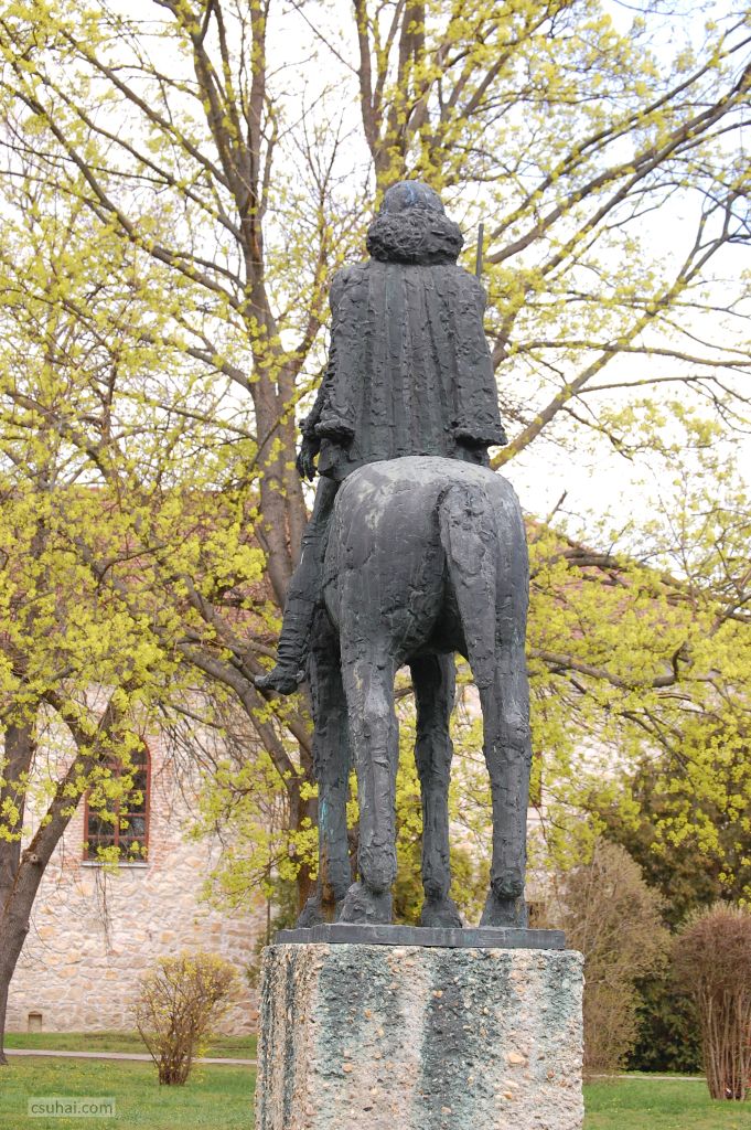 és megörökíthetjük teljesen hagyományos módon, leginkább a valószerű ábrázolást fogjuk a Rákóczi-lovasszoborban érzékelni, és nem olyasféle modernista kinyilatkoztatást, mint amilyen az 1968-as szigetvári Zrínyi volt,