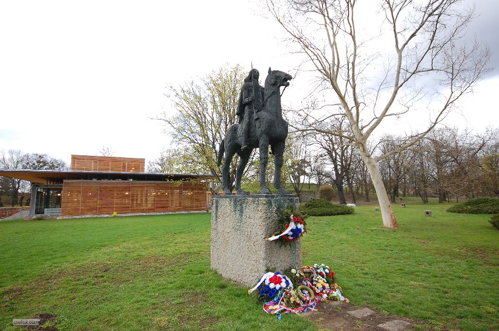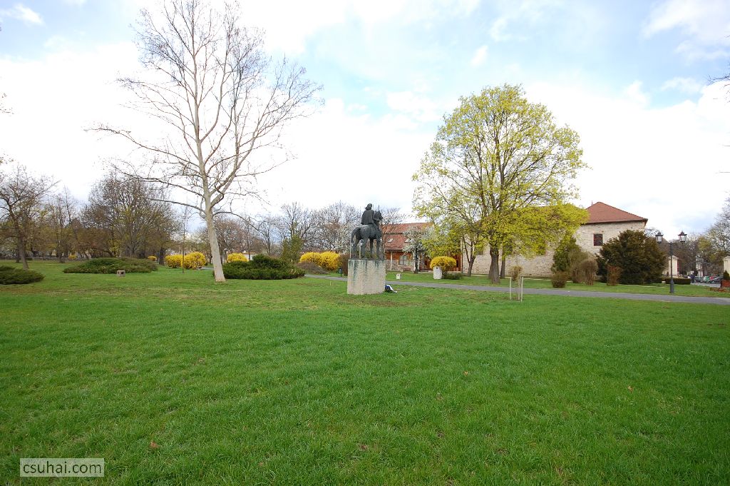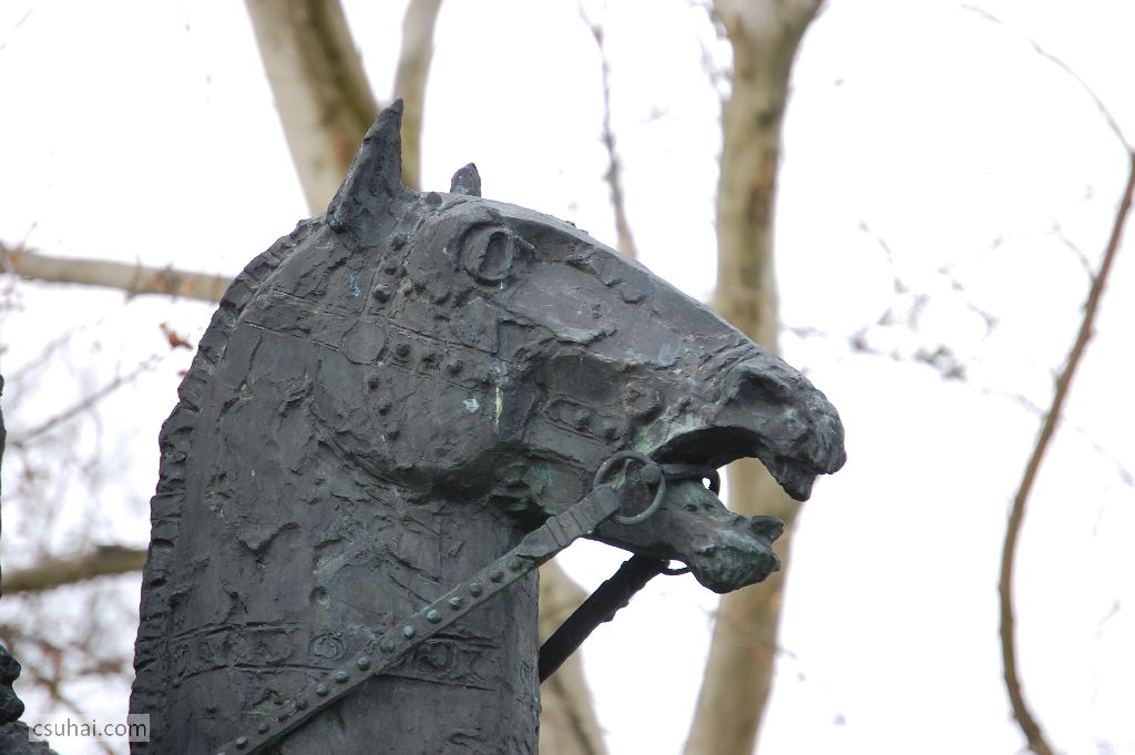 Nincs meg a szintén Vastagh készítette Hadik András lovasszobron sem, ahol a ló felemeli a fejét,