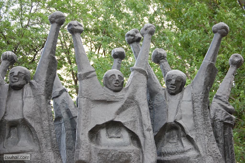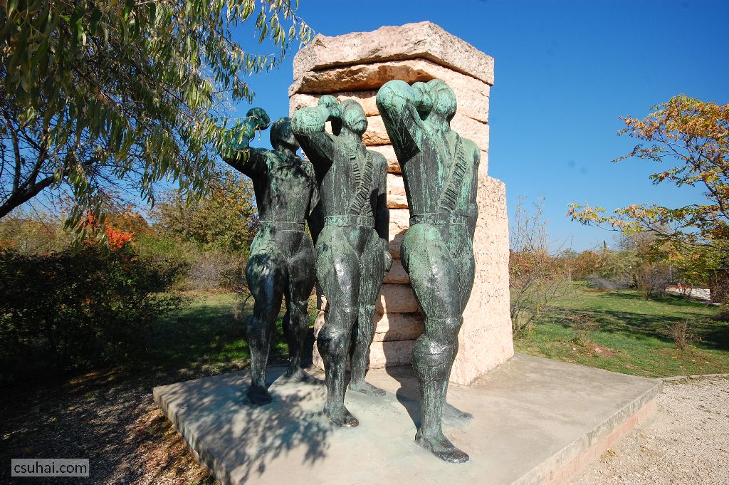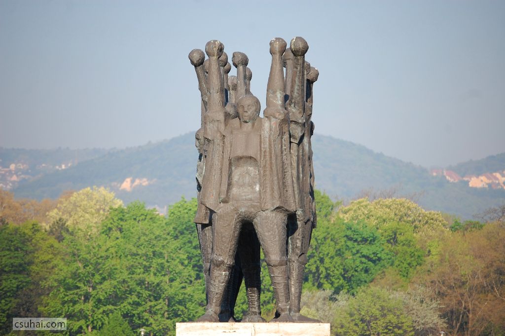 Elsőként következzen a sorban a Magyar mártíremlékmű. A Budapesten, a vizafogói lakótelep Duna-parti oldalán 1986-ban felállított szobor a mauthauseni mártíremlékmű felére kicsinyített másolata.