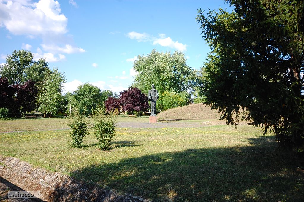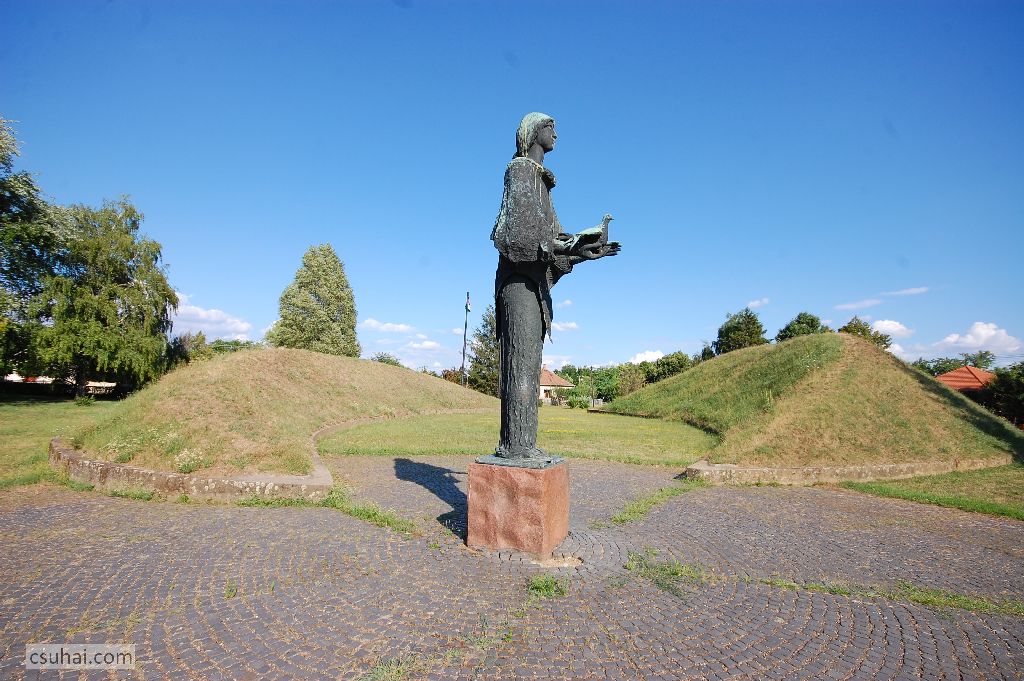 A különbség azonban óriási (nemcsak a méretbeliek), a tiszafüredi lányt keleti irányból ugyanis két, egymástól hosszanti irányban kissé eltolt, félhold alakú, fűvel benőtt hatalmas földhányás határolja, a nyugati sarkuknál térkővel lerakott kiképzés középpontjában áll a szobor.