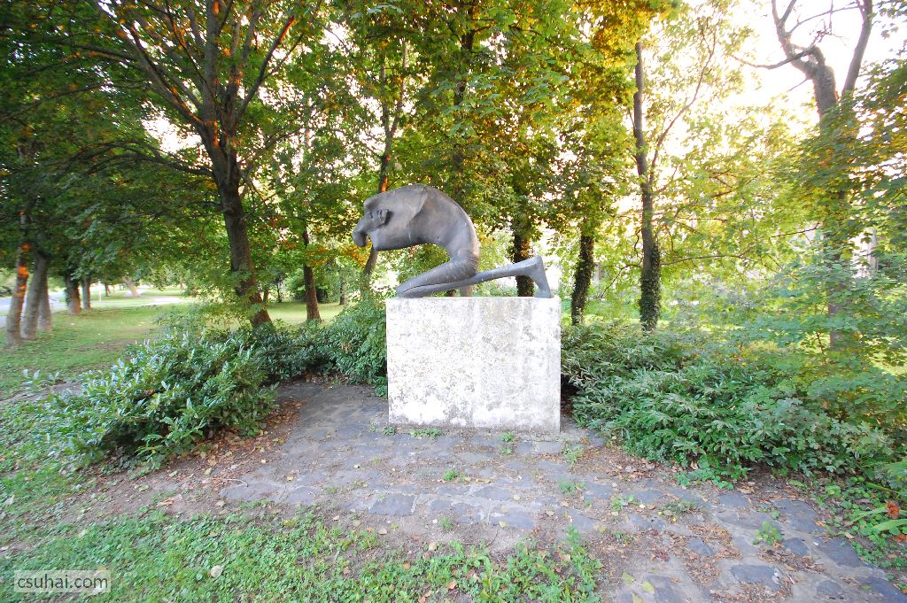 DSC_91642014-08-09_09-36-21az egyik legjobb szobrászati mű ebben a témakörben, a jobboldali Magyarország újabban szokásos szoborkörtáncában osztozott: eredetileg a belváros kellős közepén állt, jobbikos javaslatra, a város szoborállományának átrendezése ürügyén került jelenlegi helyére, egy félreeső, a Keszthellyel közigazgatásilag határos Gyenesdiáshoz közeli kis fürdőutcácska kiteresedő oldalára. Ez persze a szobor értékéből semmit nem von le, legfeljebb azok látják kevesebben, akikhez szólna, akikhez szólnia kellene —