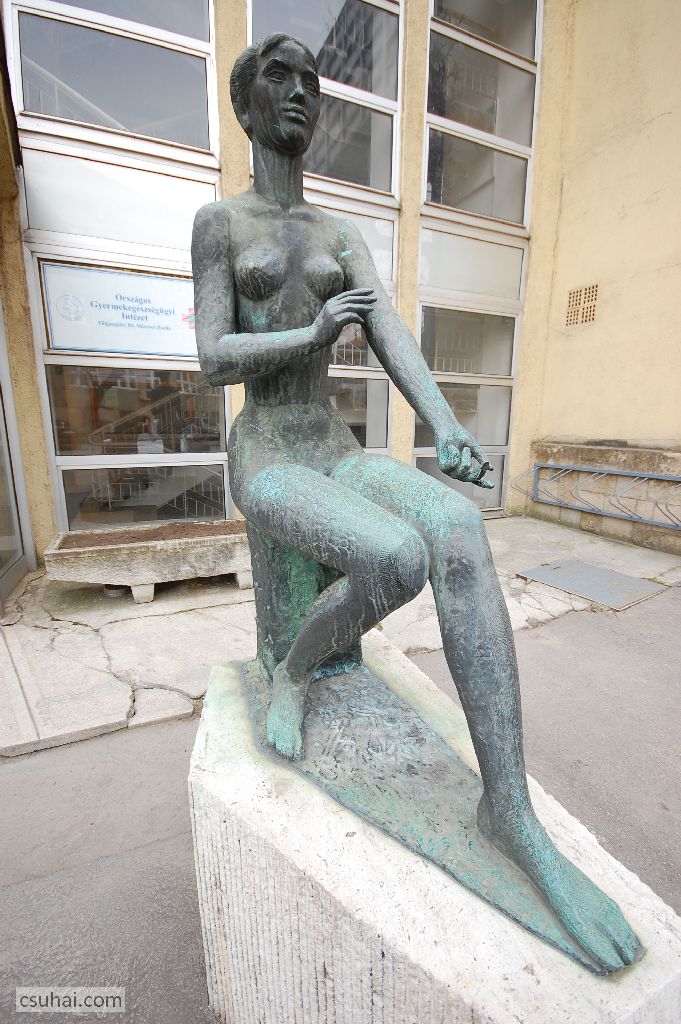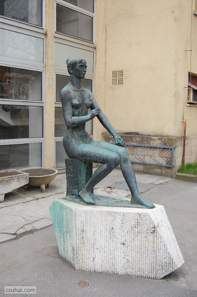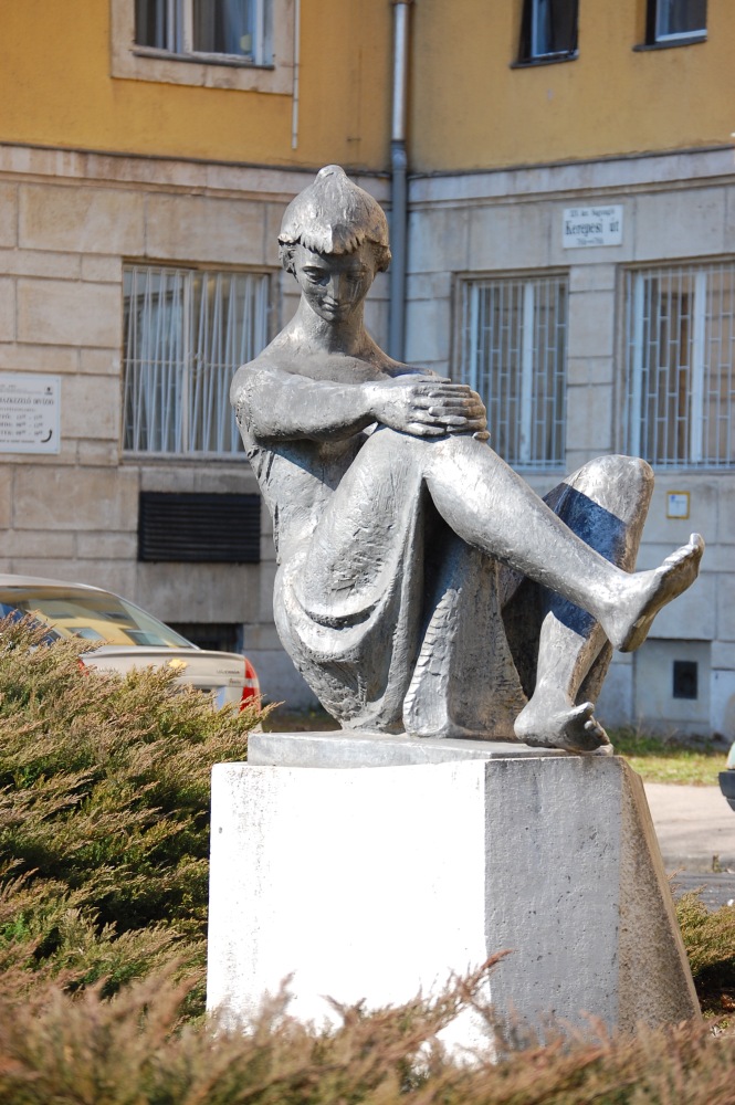 Más a helyzet a Kerepesi úti lakótelep főhomlokzatának egyik teresedésébe az építés idején, 1958-ban készült Ülő leánnyal,