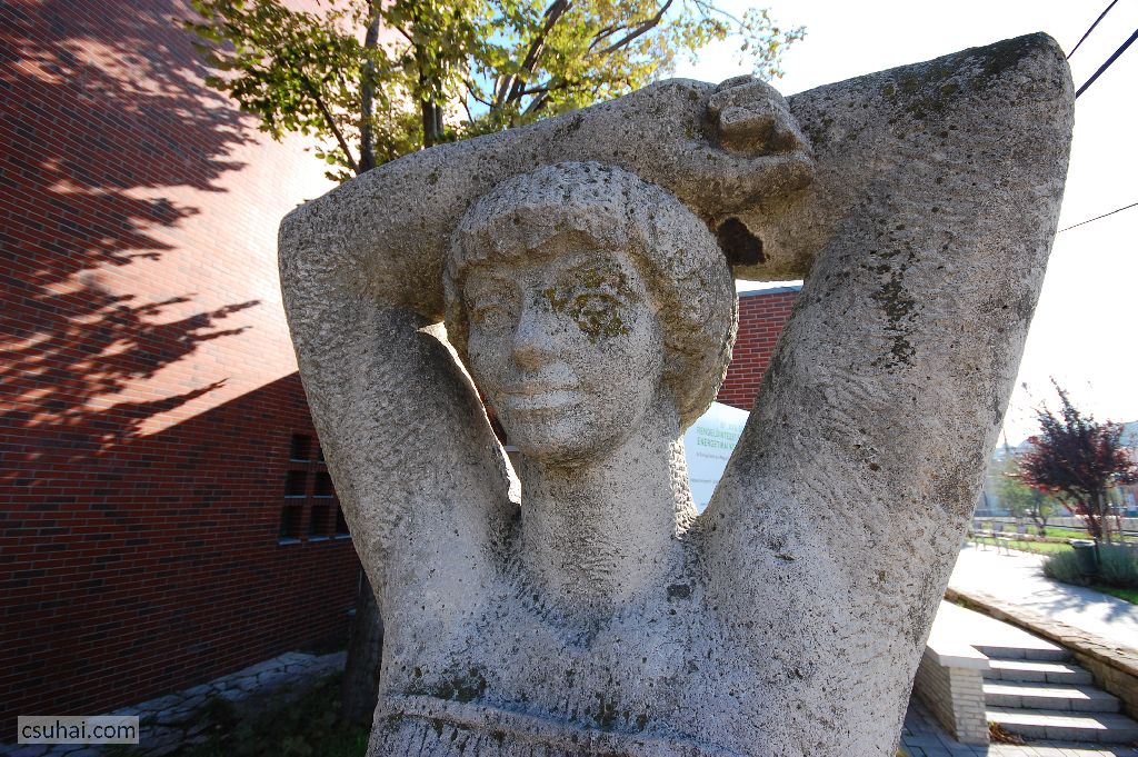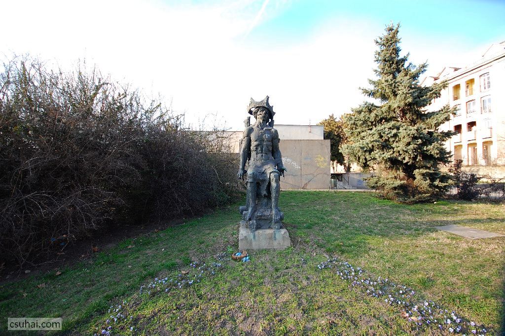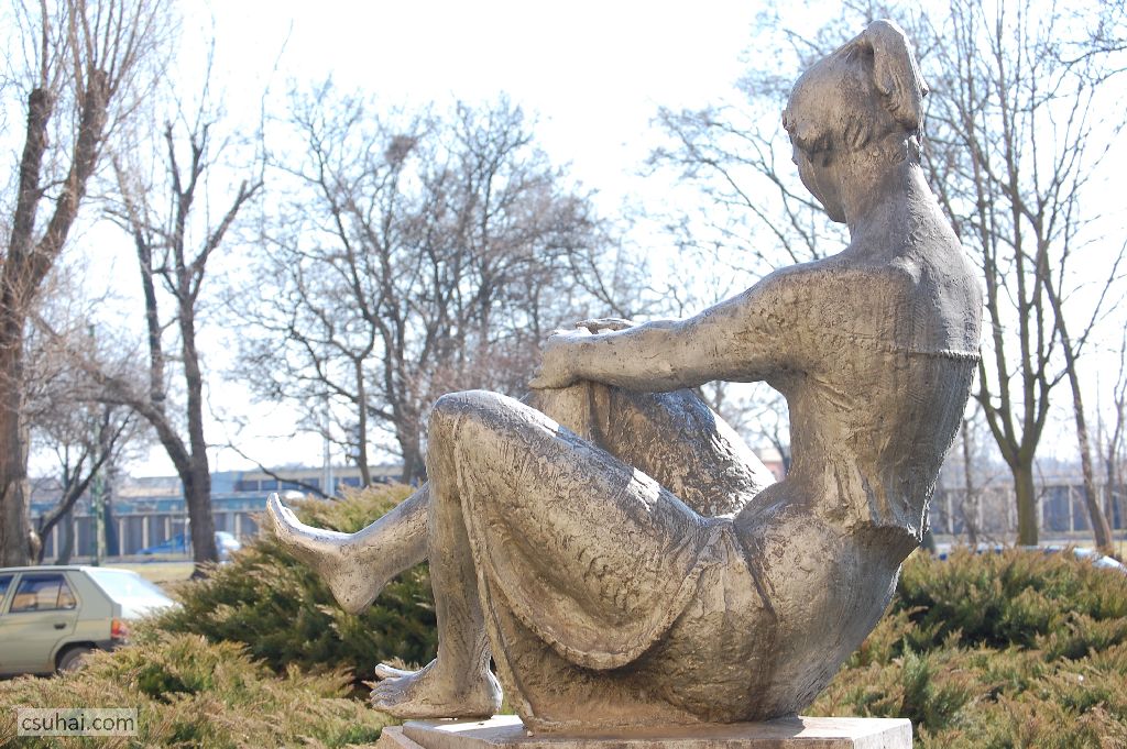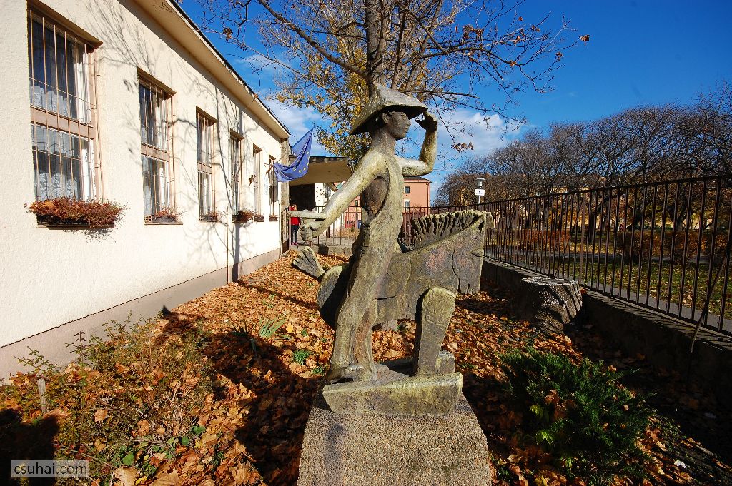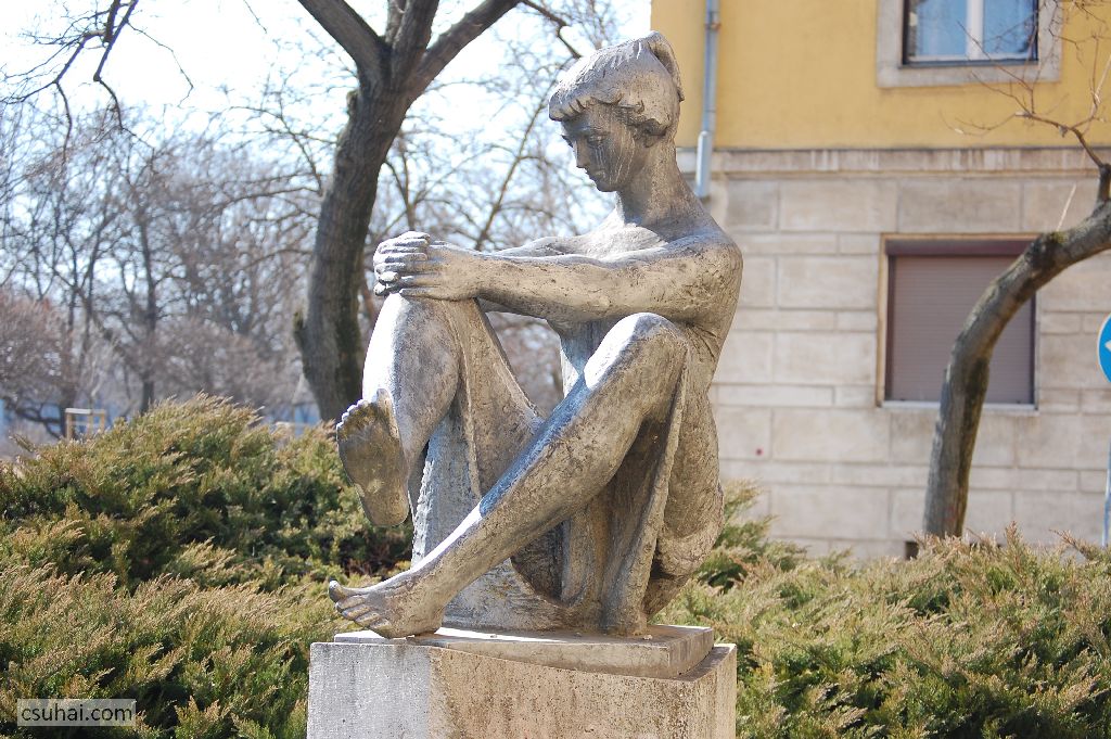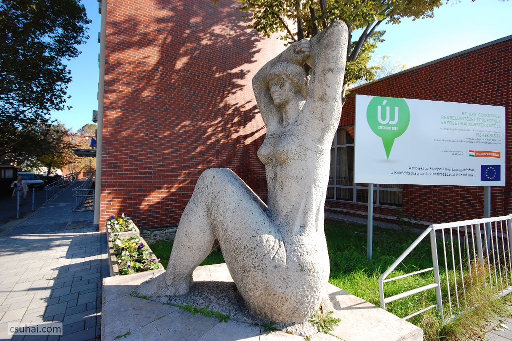 a szobor egy pesterzsébeti általános iskola nagy parkra néző,