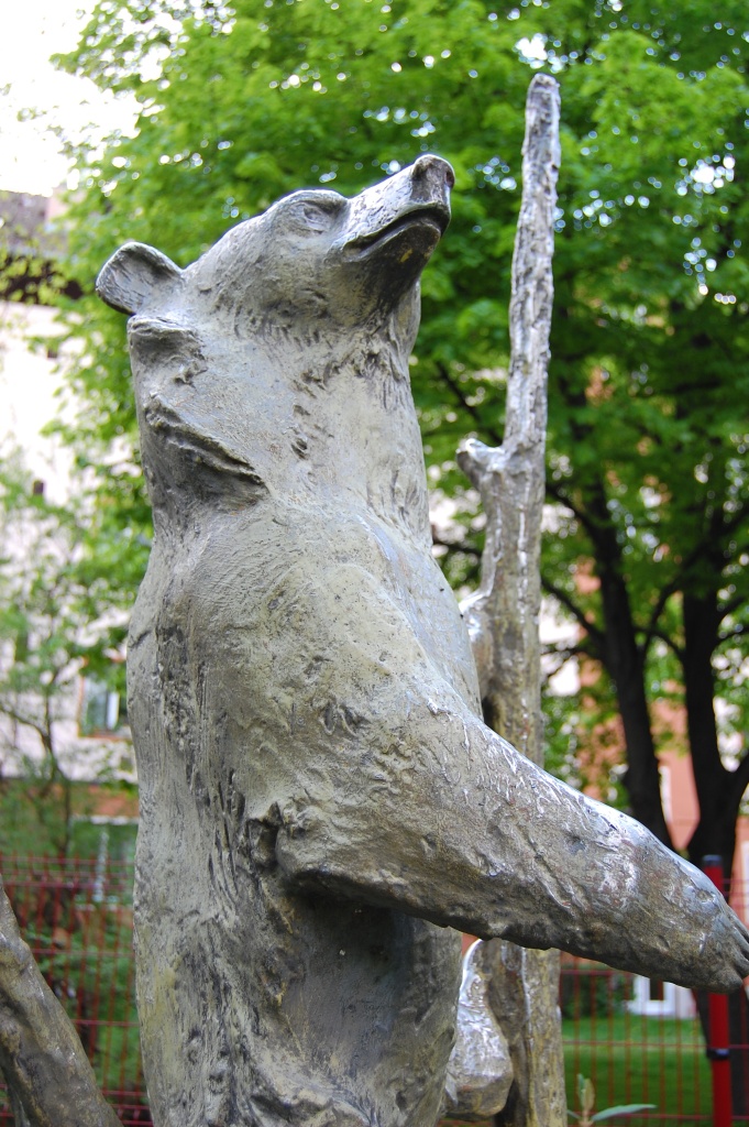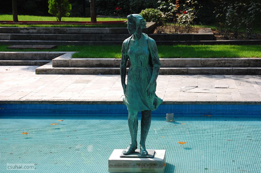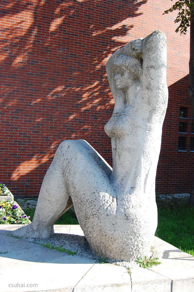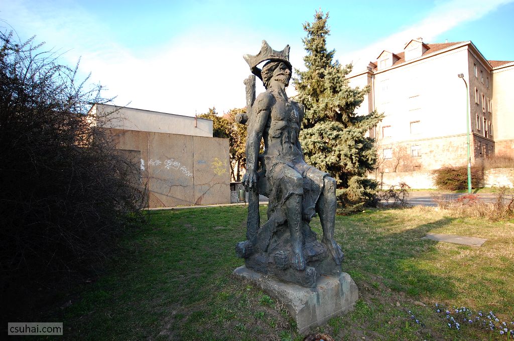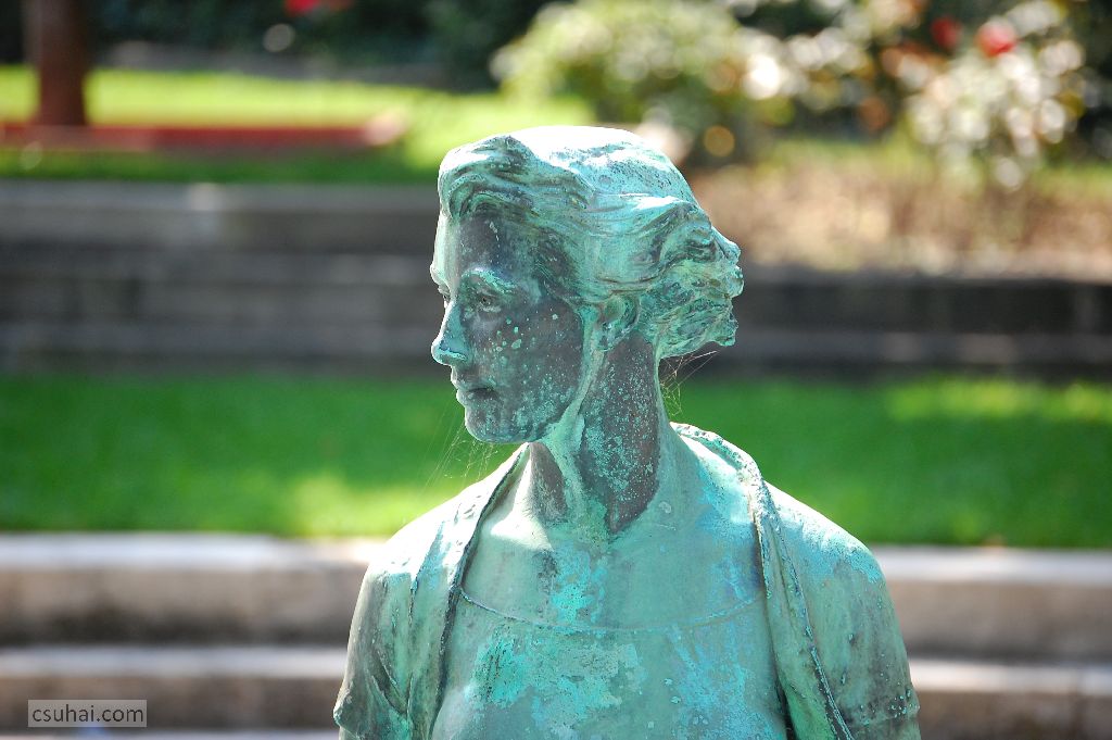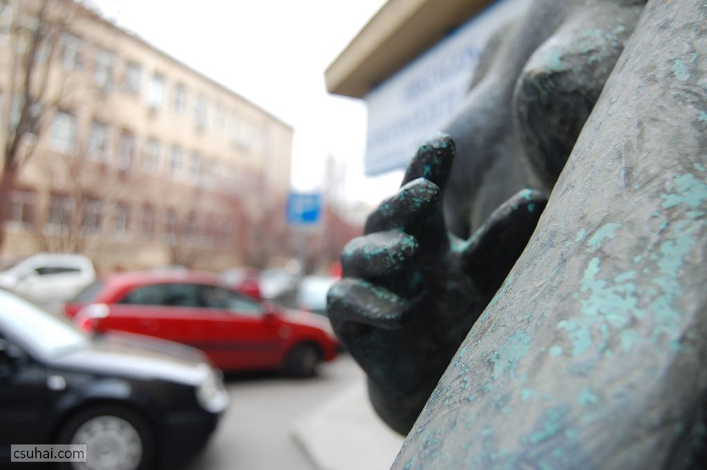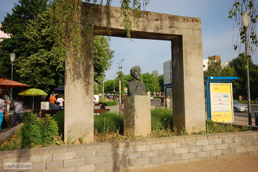a szobor egy pesterzsébeti általános iskola nagy parkra néző,